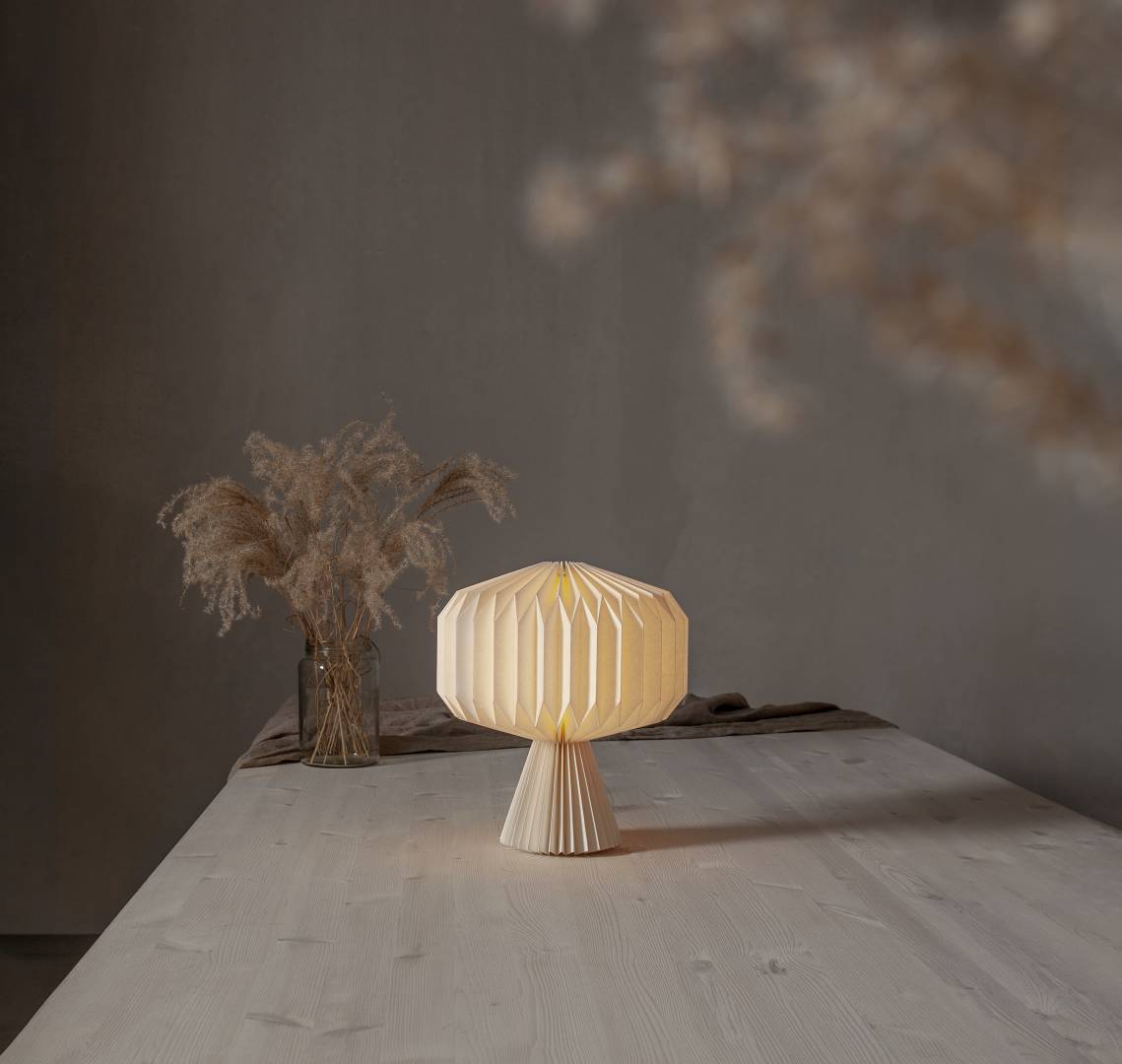 FSC-merkitystä paperista valmistettu pöytäkoriste sisäkäyttöön. Voi käyttää pelkkänä