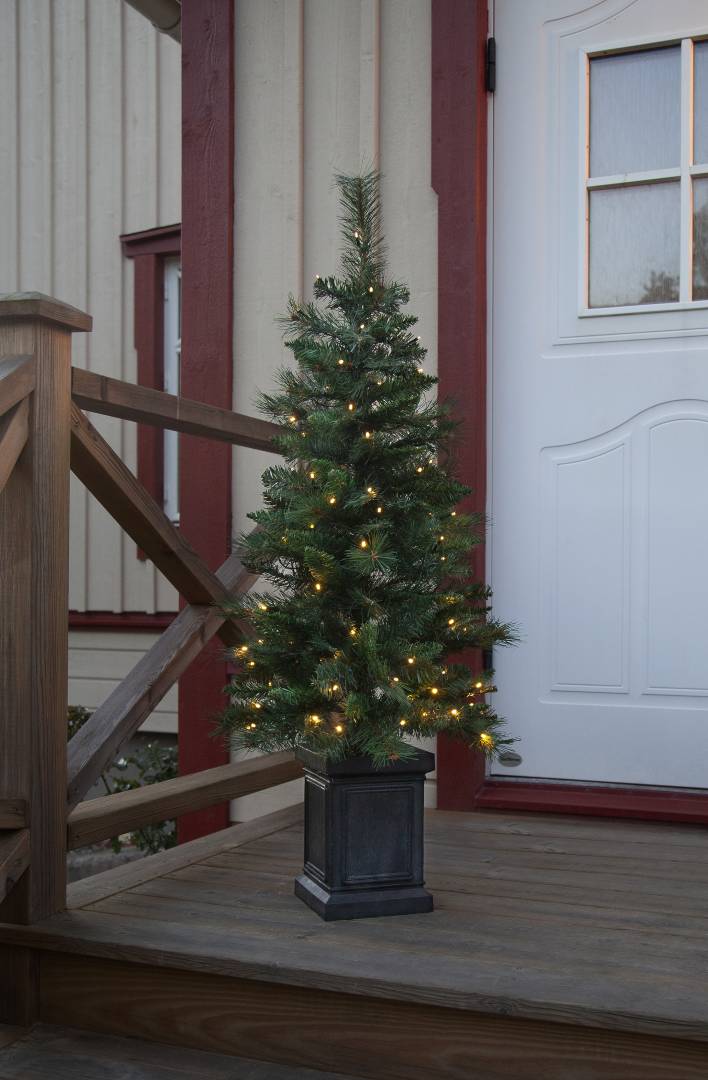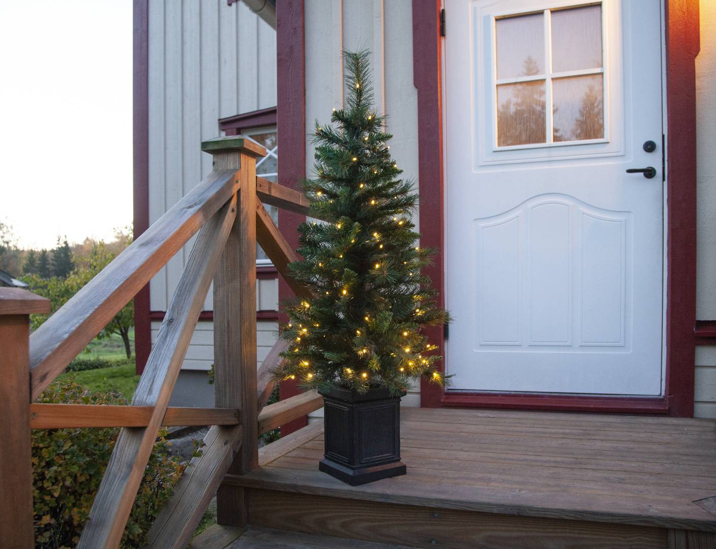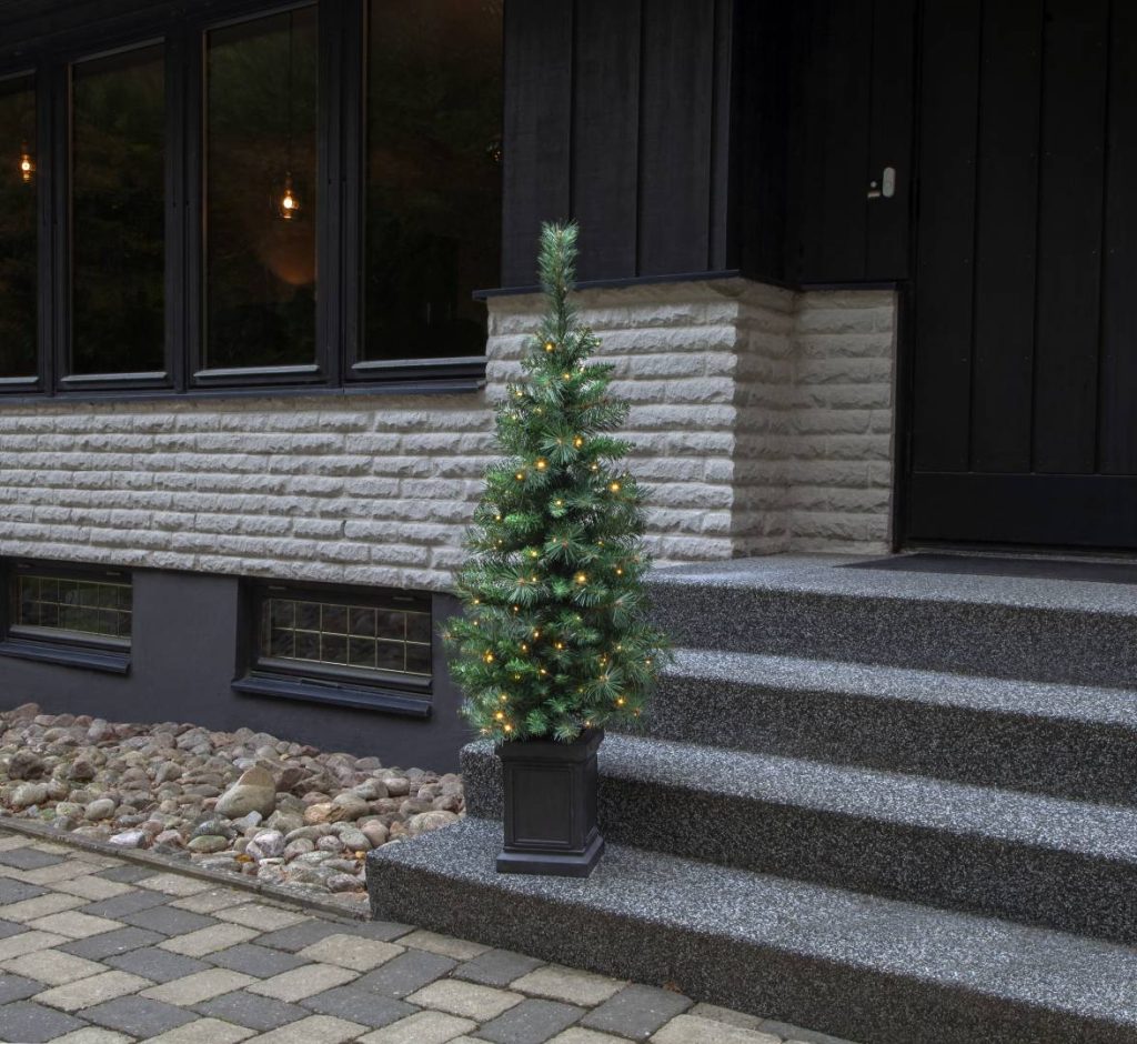 Ulko- ja sisäkäyttöön sopiva 120 cm korkea joulukuusi ruukussa.