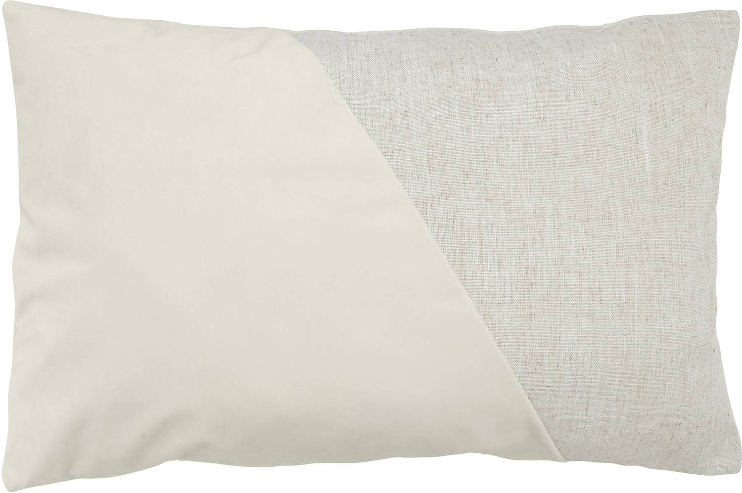 Tyynynpäällinen pellavaa muistuttavaa yksiväristä kangasta ja samettia. Vetoketju alareunassa.
