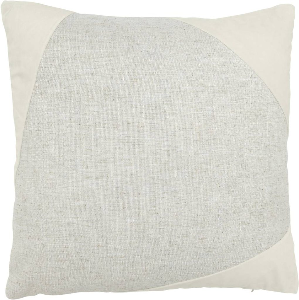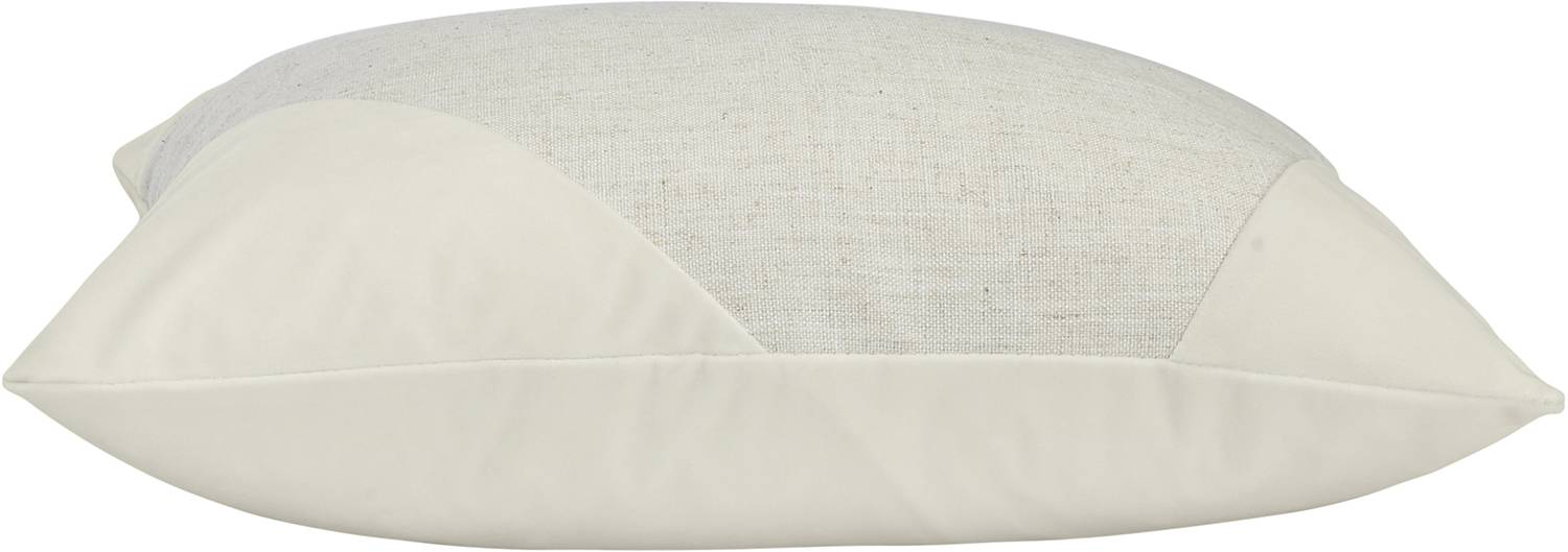 Tyynynpäällinen pellavaa muistuttavaa yksiväristä kangasta ja tiivistä samettia. Vetoketju alareunassa.