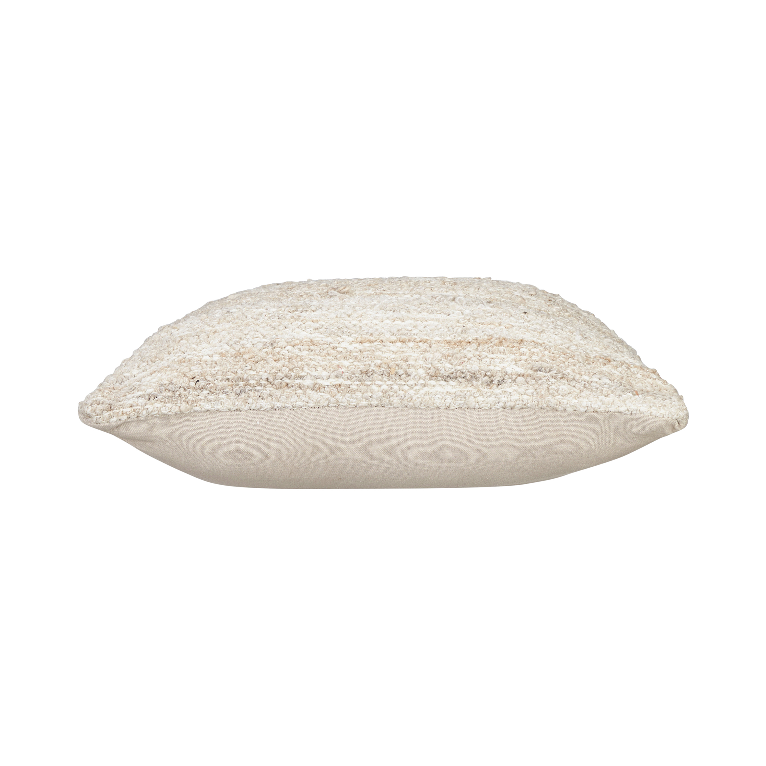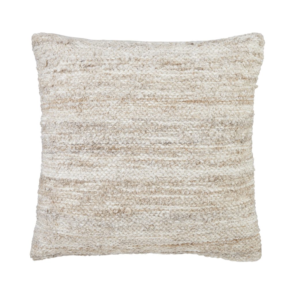 Jana-tyynynpäällisen etupuoli on villasekoite-efektilankaa, taustapuoli vahvaa puuvillakangasta. Piilovetoketju taustapuolella.