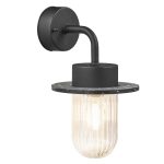 Klassisen mallinen, elegantti terrazzo-tyylinen seinävalaisin, jonka runko on metallia, kupu uurrettua lasia ja varjostin kierrätysmuovia.