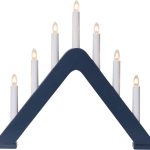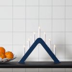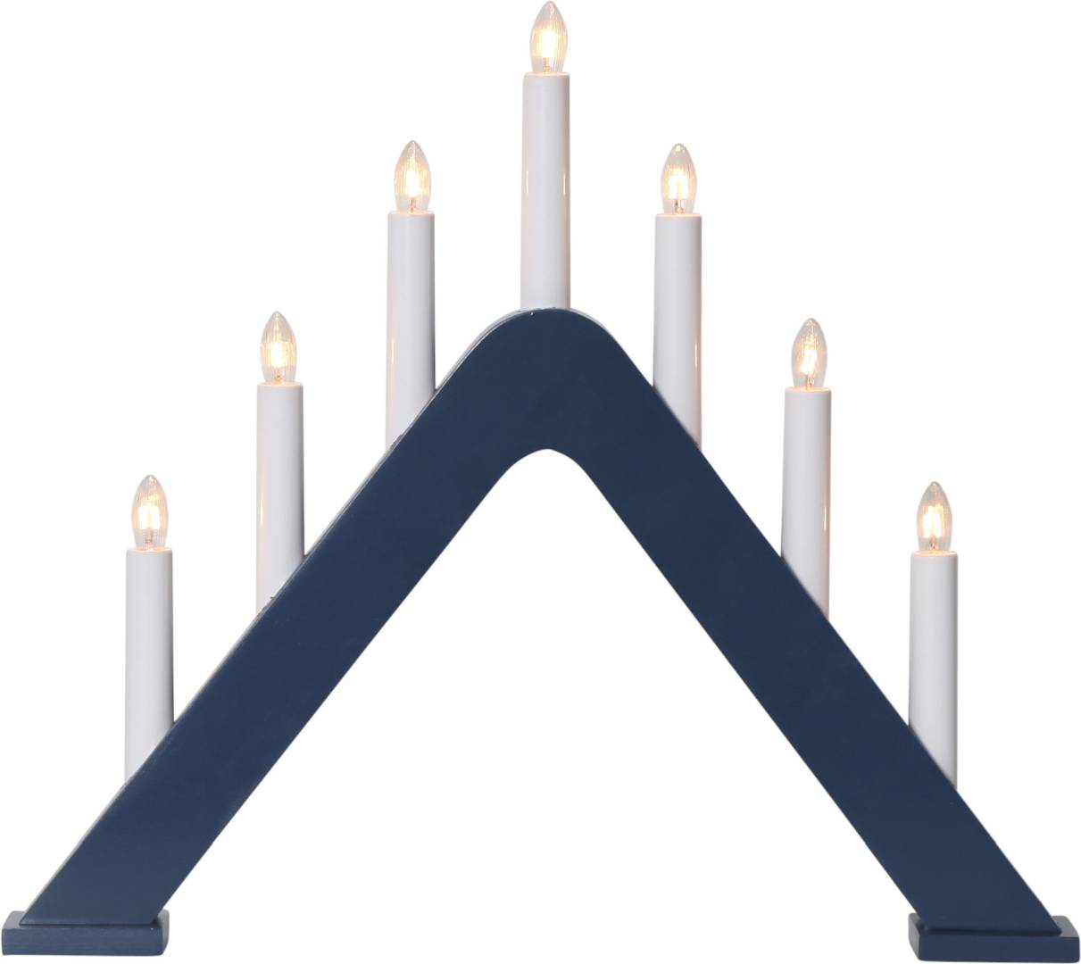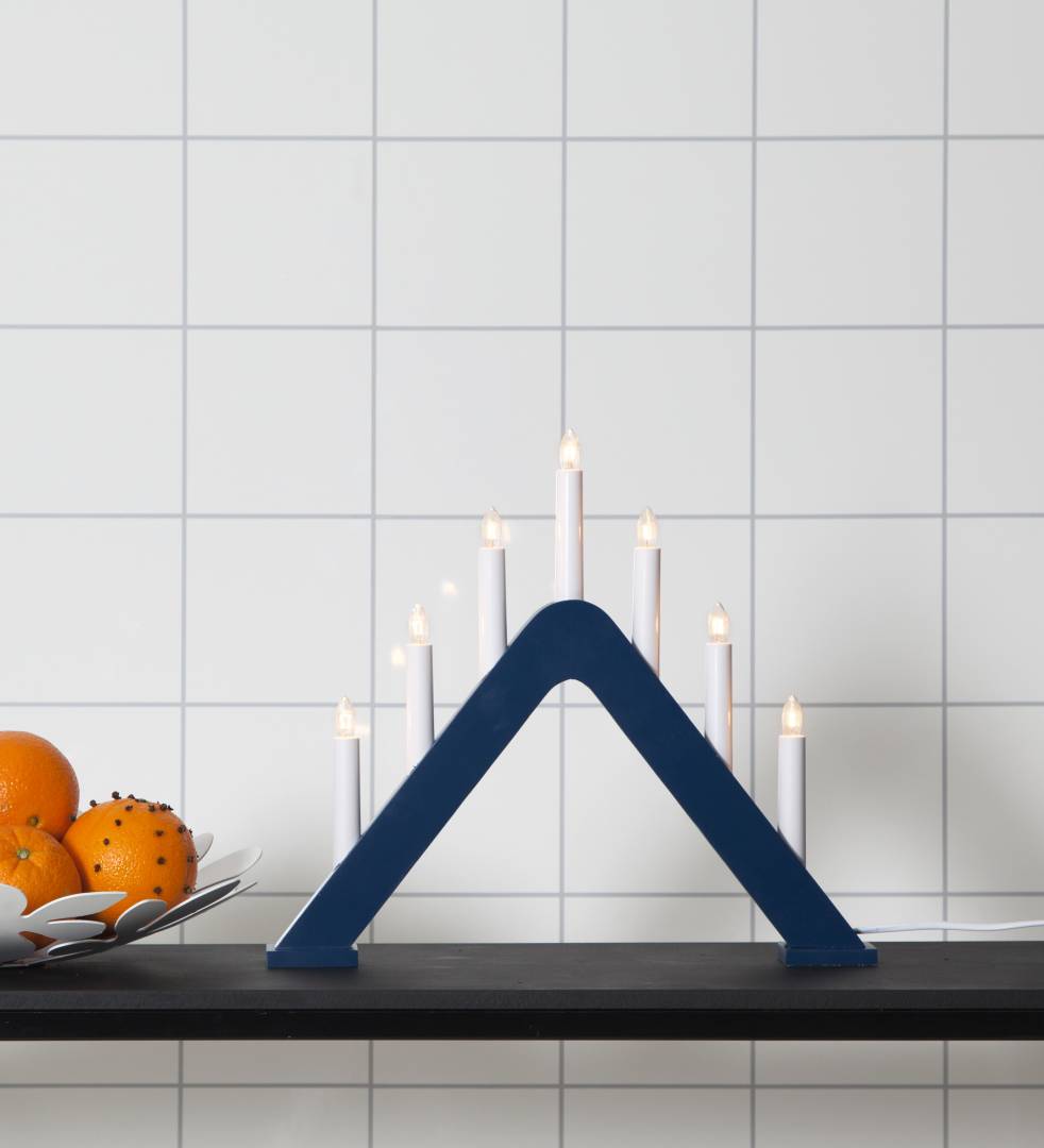 Sinisen värinen pelkistetty puukynttelikkö, joka sopii esim. ikkunalaudalle tai lipaston päälle luomaan kotiin jouluista tunnelmavalaistusta.