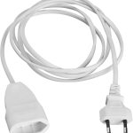 Valkoinen maadoittamaton jatkojohto, pituus 2 metriä.