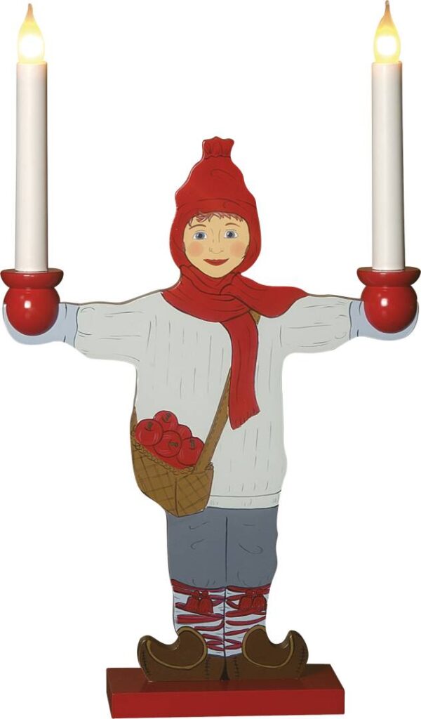 Pöytäkoriste kahdella kynttilällä, sisäkäyttöön.