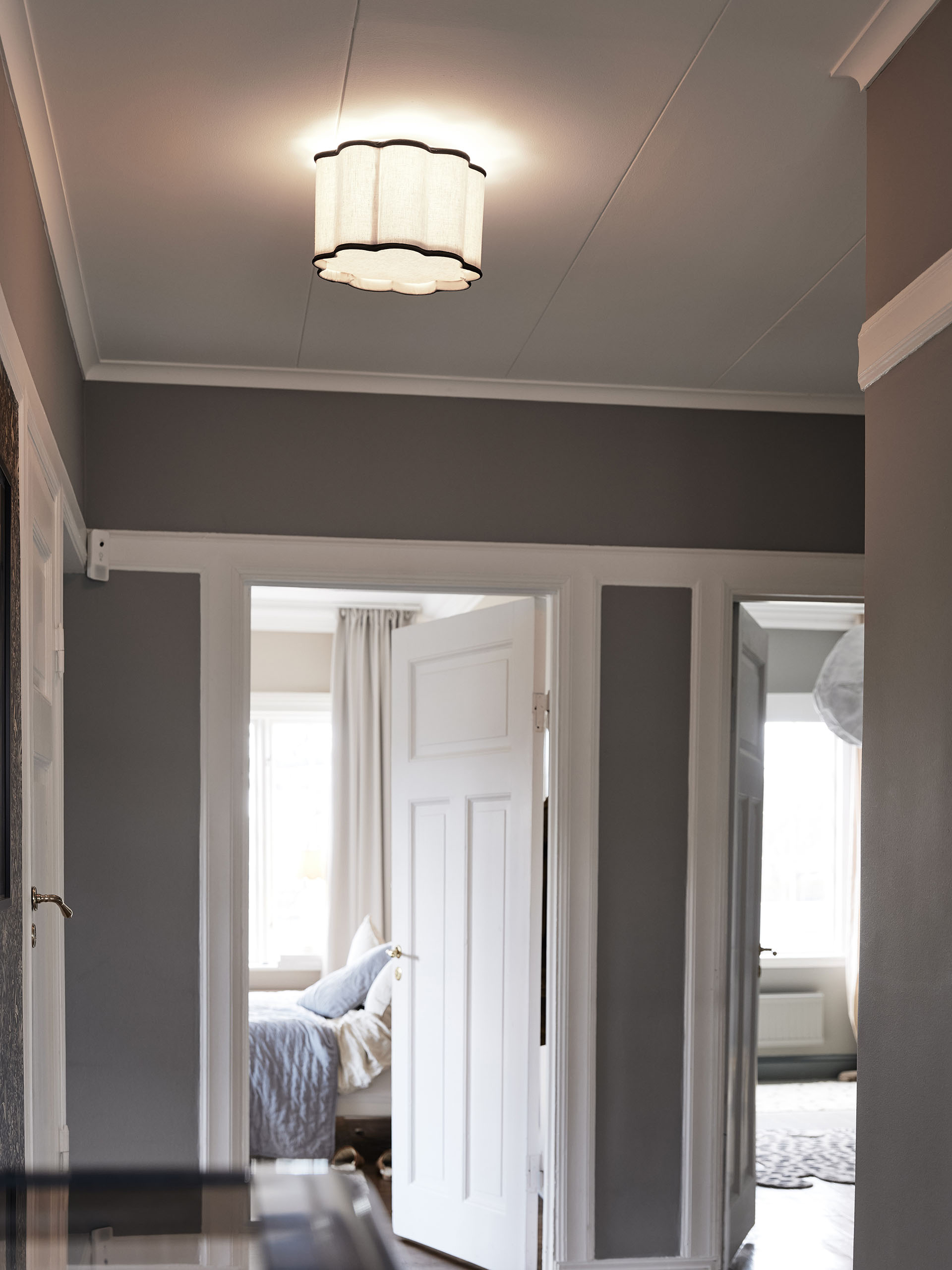 Judy on luomupuuvillasta valmistettu kukan muotoinen kattoplafondi, jonka musta kanttaus tuo muodon kauniisti esiin ja tekee valaisimesta kauniin katseenvangitsijan. Kangas on valkaisematonta, ja varjostin on vuorattu kauttaaltaan samalla kankaalla. Myös häikäisysuojus on kankainen. Sopii moneen eri tilaan luomaan miellyttävää yleisvaloa.