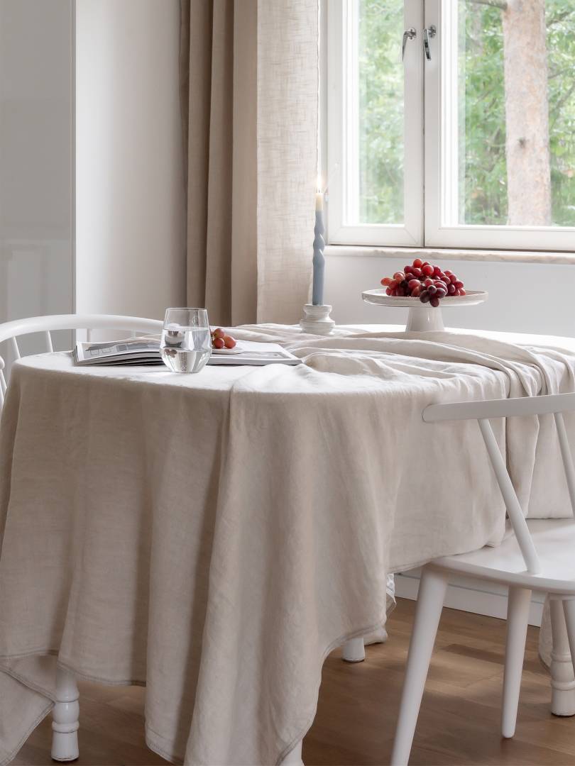 Yksivärinen pöytäliina kevyesti kivipestyä pellavaa. Pellava on peräisin Belgiasta ja Ranskasta. Täydennä kattaus yhteensopivilla kangasserveteillä ja alusliinalla.