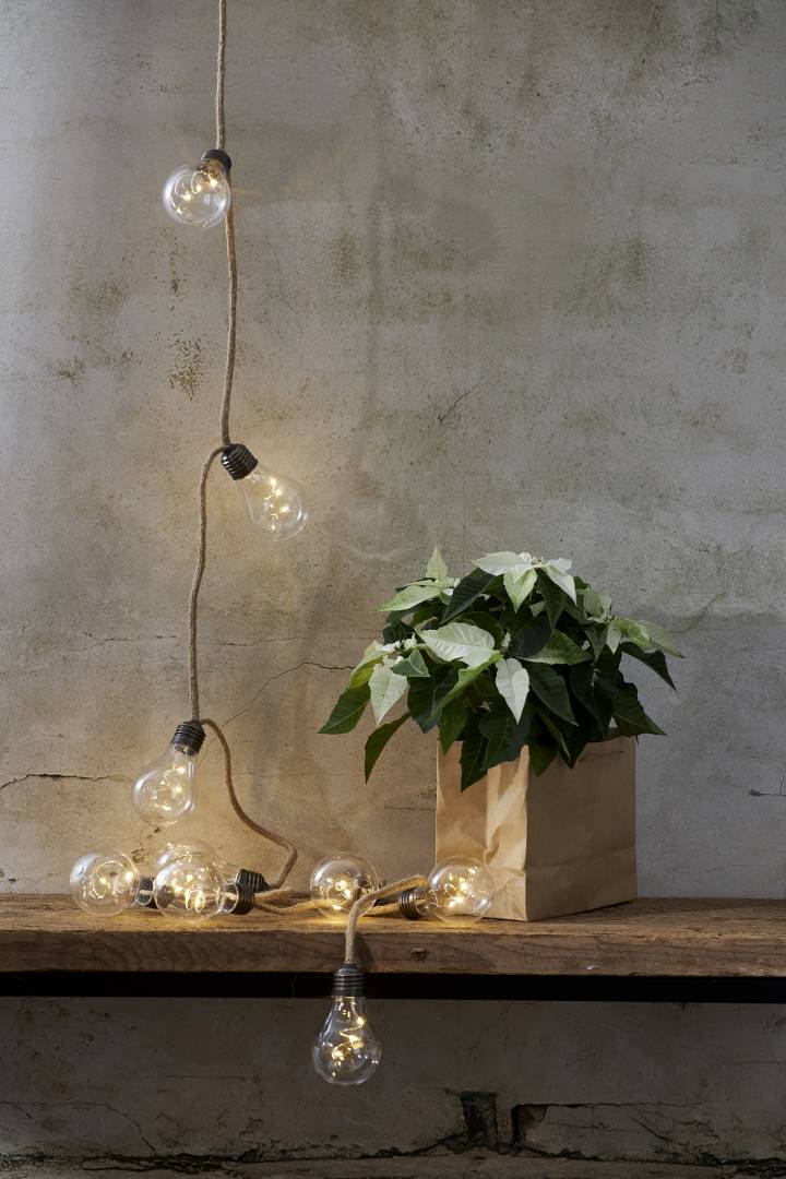 juuttipäällysteinen kaapeli. Valon sävy: lämmin valkoinen.