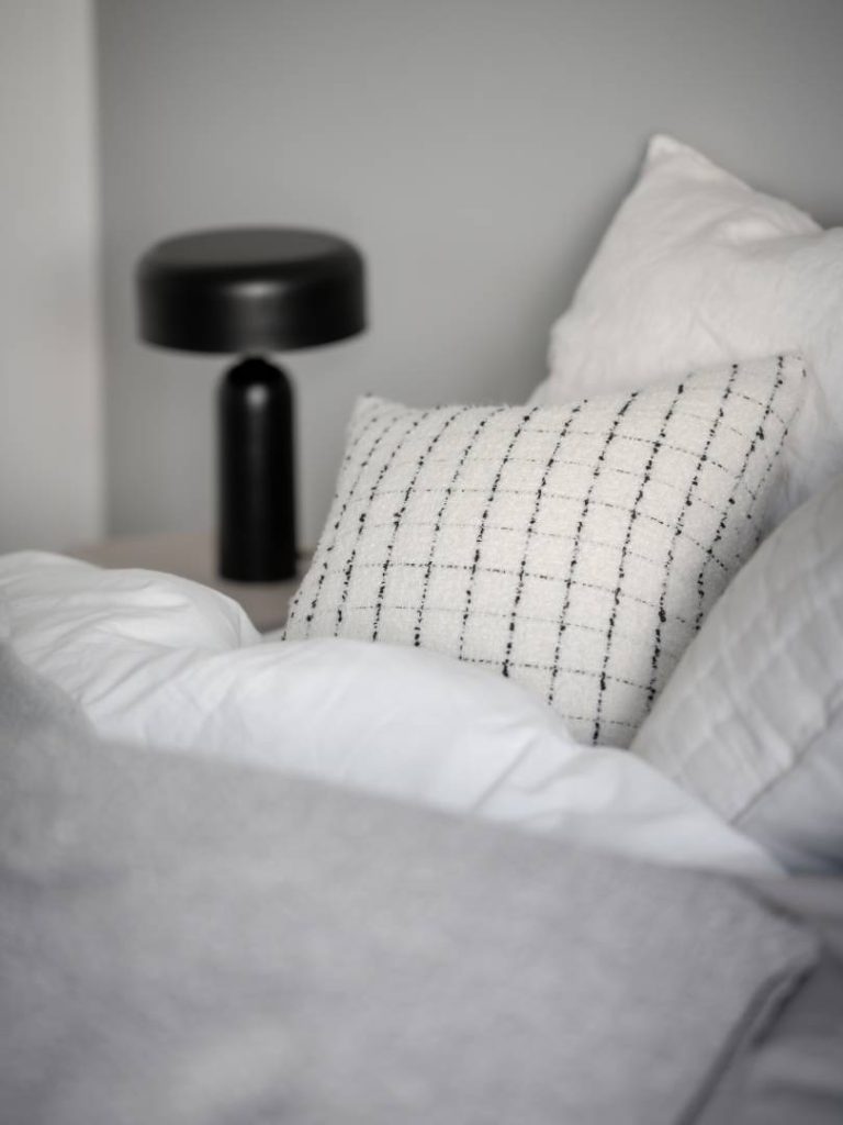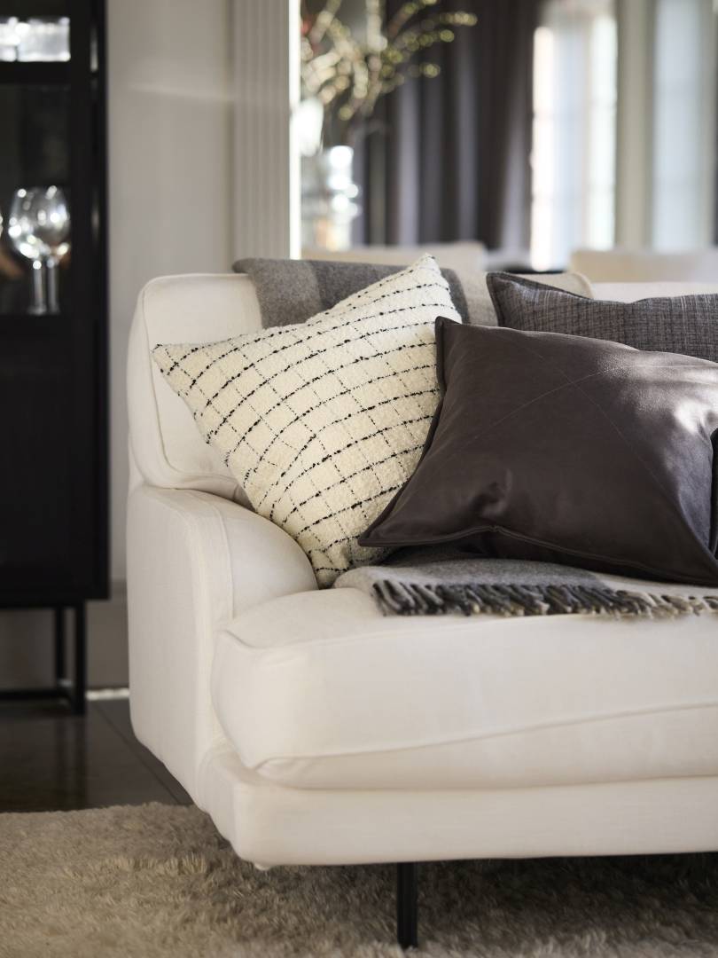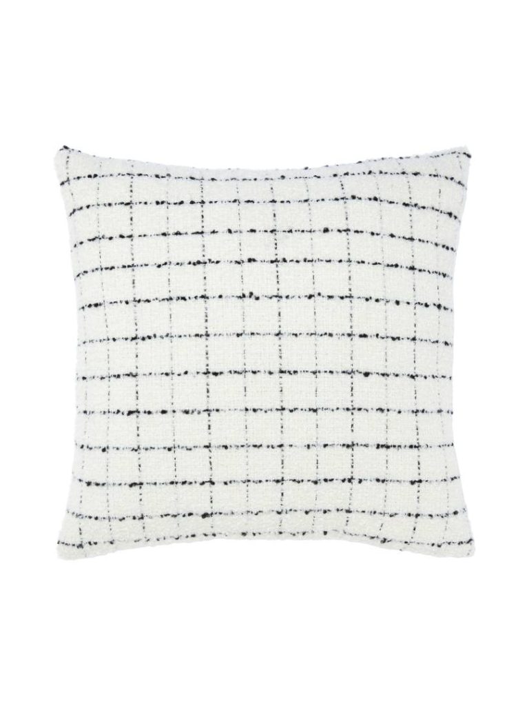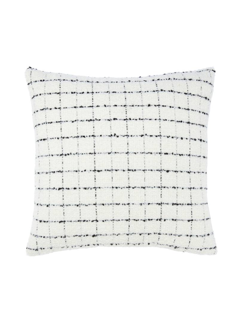 Tyynynpäällinen bukleelankaa. Tyylikäs kuviointi, joka elävöittää kangasta. Vetoketju tyynynpäällisen alalaidassa.