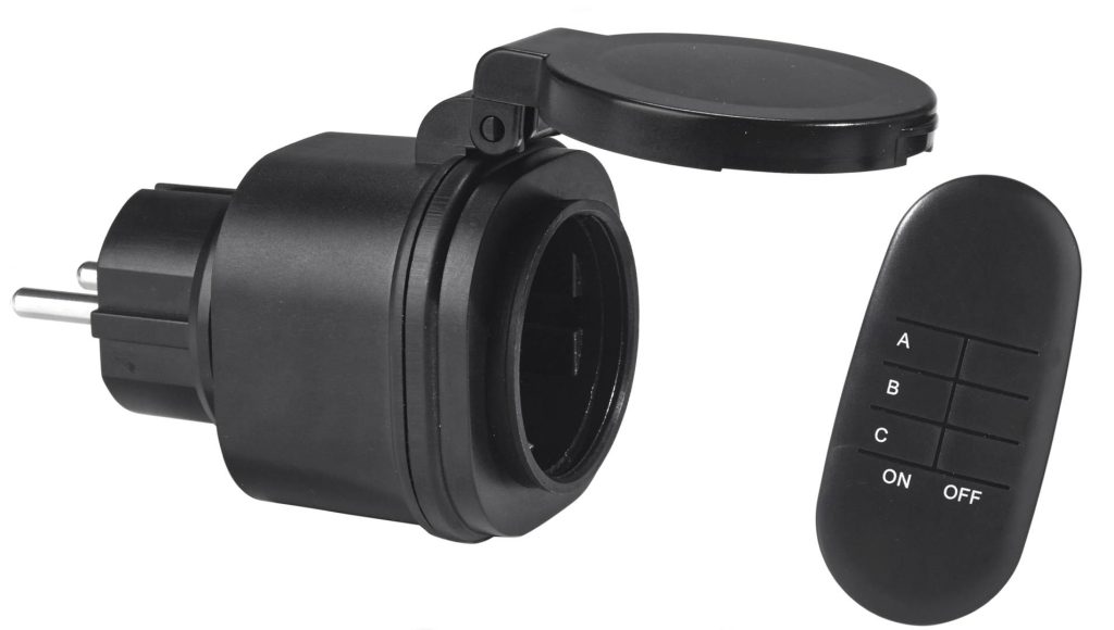 Kauko-ohjattava pistorasia ulkokäyttöön. Pistorasiaan voit kytkeä esimerkiksi valosarjan tai ulkokäyttöön tarkoitetun valaisinjohtosarjan, ja ohjata valojen toimintaa kaukosäätimellä.