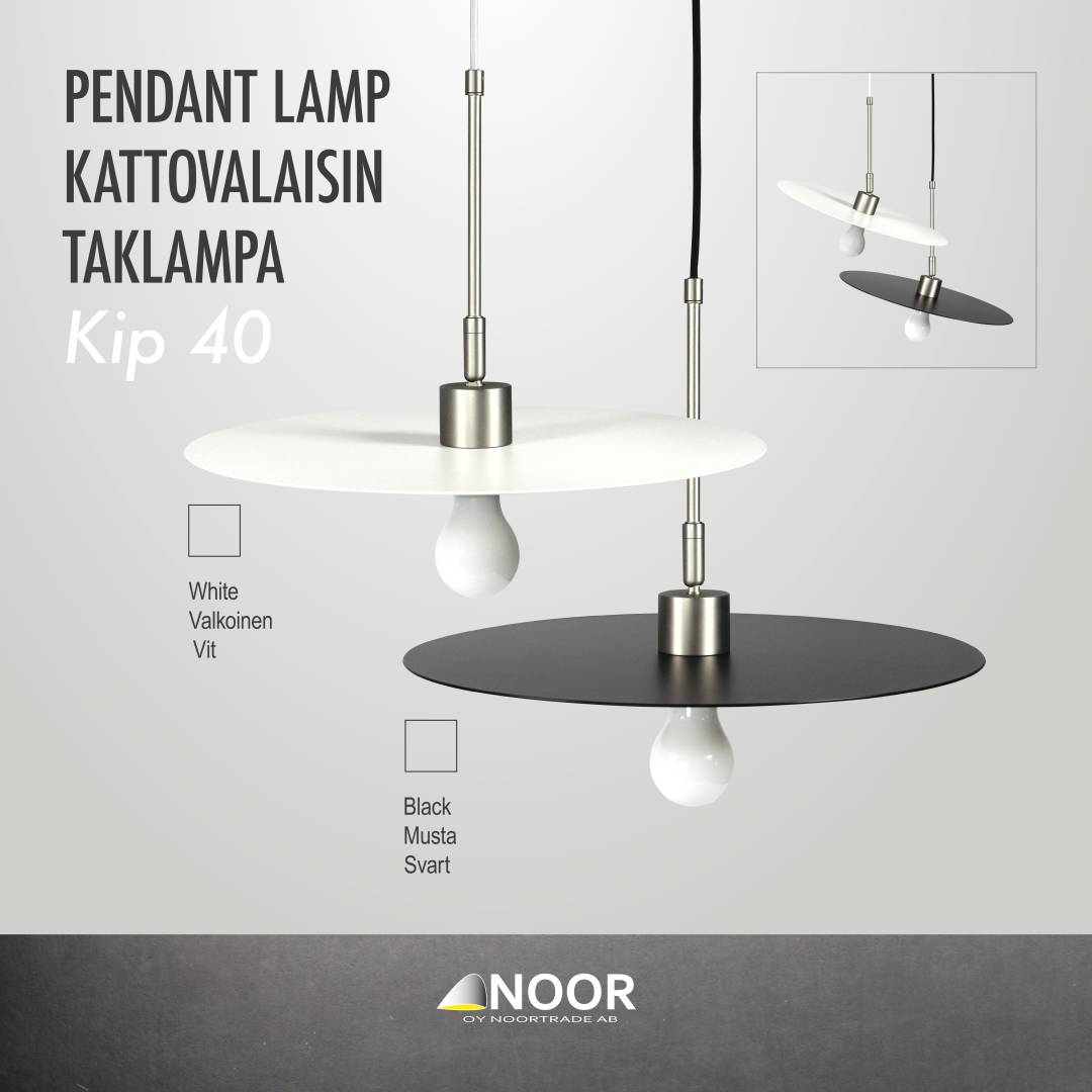 Suoraviivaisen tyylikkäässä Kip-riippuvalaisimessa on pallonivel, jonka ansiosta valaisinta voi halutessaan kallistaa. Mattapintaisesta metallista valmistettu valaisin sopii esimerkiksi ruokapöydän