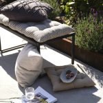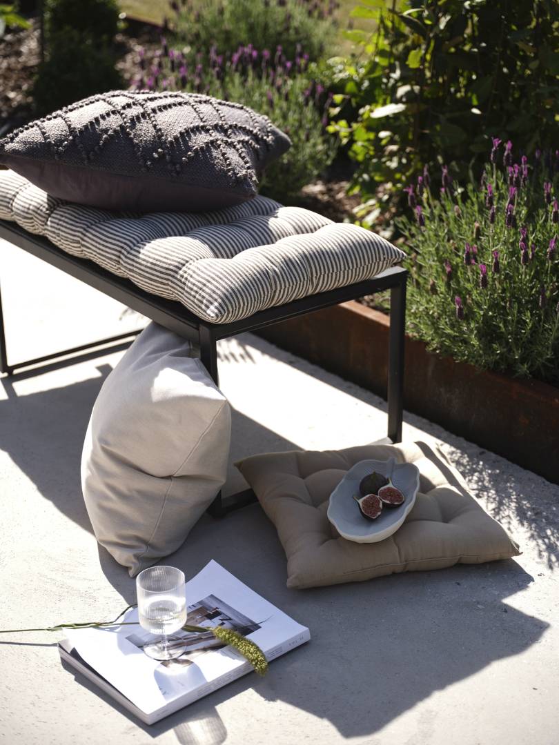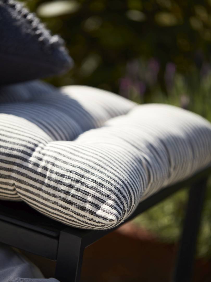 Istuintyyny puuvillakangasta. Koristeompeleet, polyesteritäyte.