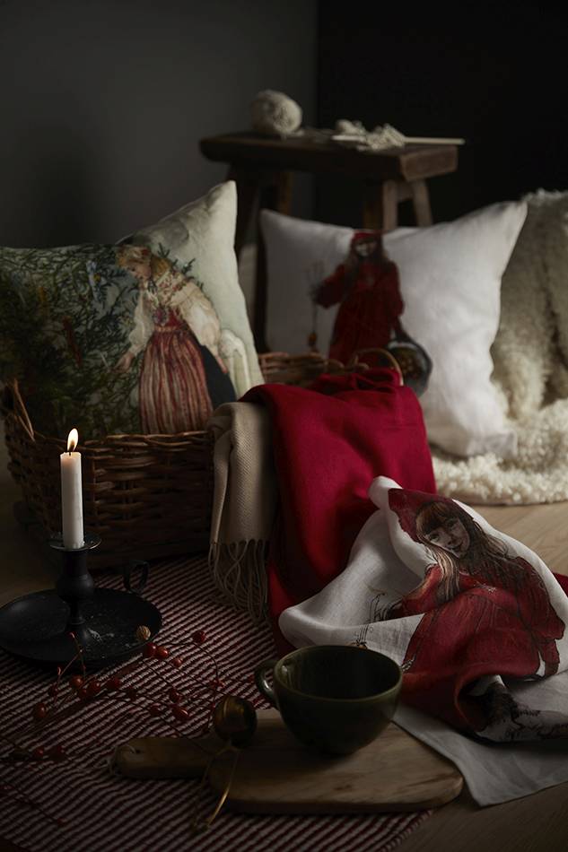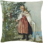 Pellavainen tyynynpäällinen, jossa painettu kuva Carl Larssonin maalauksesta. Piilovetoketju alareunassa.