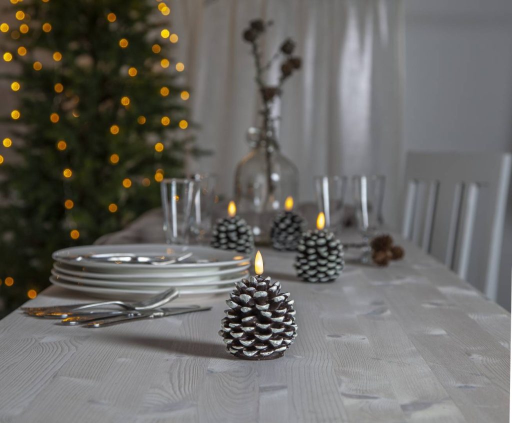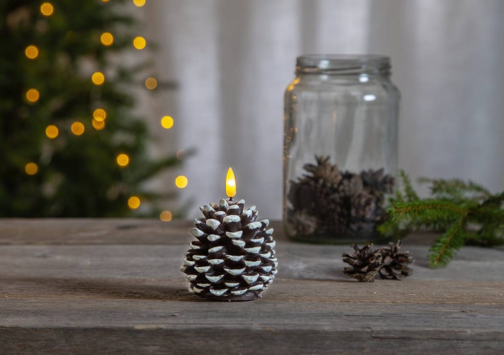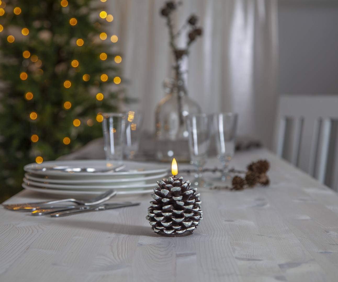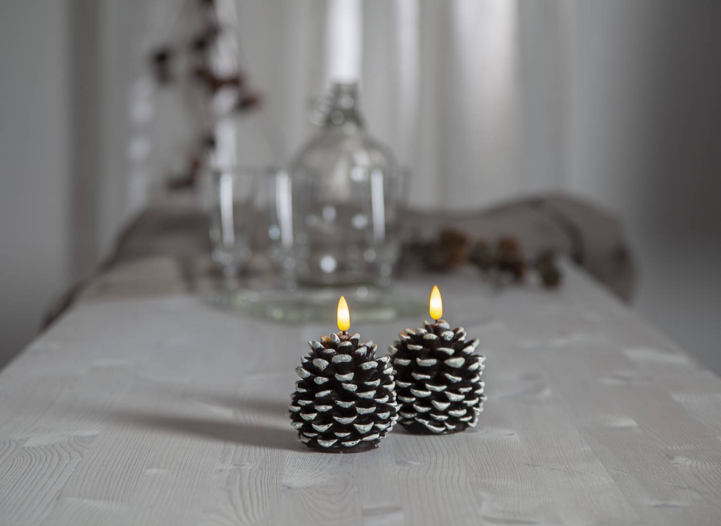 Flamme Cone on vahasta valmistettu kävyn muotoinen LED-kynttilä, jossa loistaa aidon näköinen lämpimän valkoinen liekki. Kynttilä on tarkoitettu sisäkäyttöön. Kaunis koriste esimerkiksi jouluiseen kattaukseen.