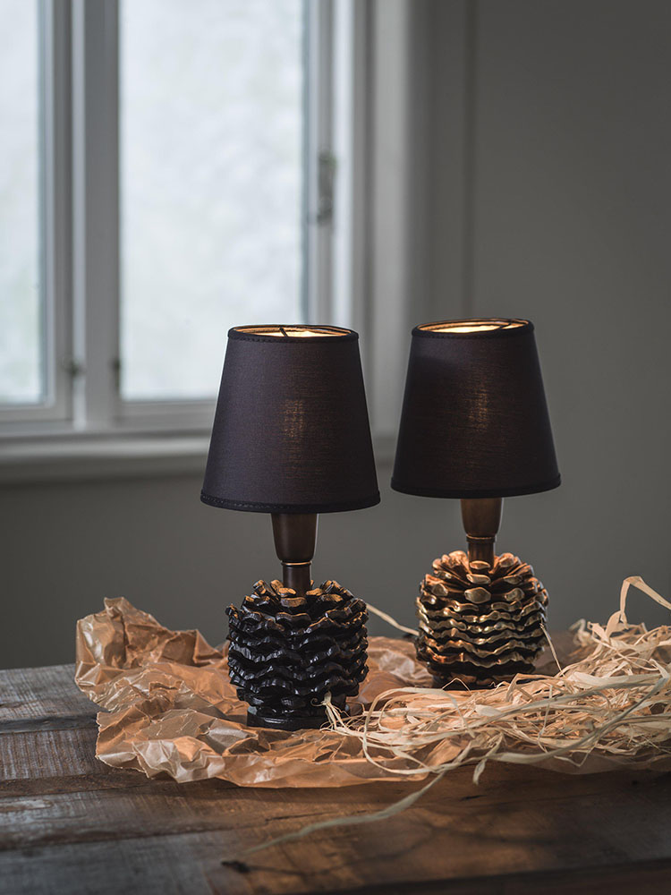 Kävyn muotoinen lampunjalka metallia. Lampunjalkaan sopii halkaisijaltaan n. 12-14 cm oleva varjostin.