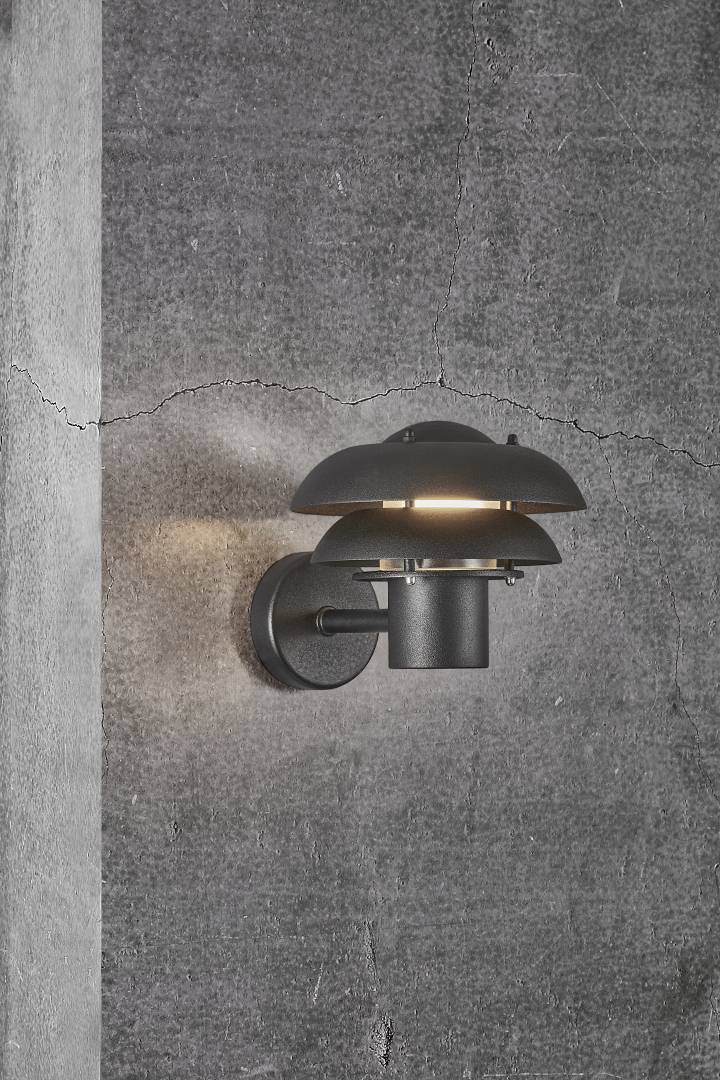 Klassinen ja moderni seinävalaisinmalli, joka sopii täydellisesti esimerkiksi sisäänkäynnin yhteyteen tai terassille. Pyöristetyn muotoiset varjostimet suojaavat häikäisyltä.