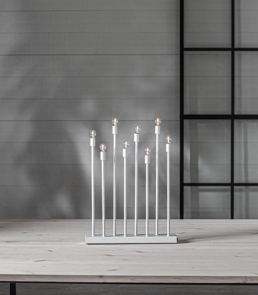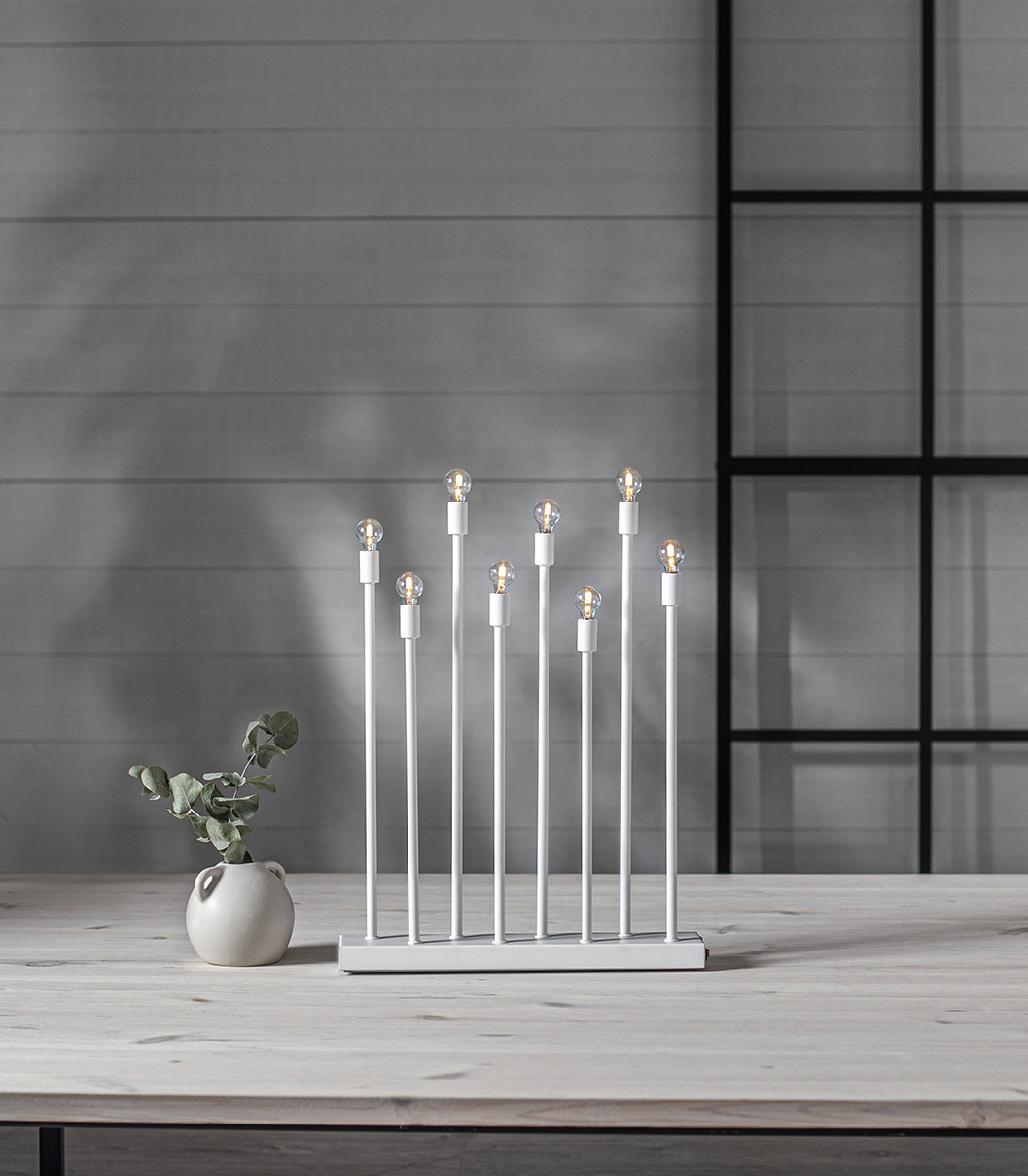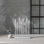 Moderni ladattava metallikynttelikkö, joka on johdottomana helppo sijoittaa esimerkiksi ikkunalaudalle, lipaston päälle tai pöydälle. Kynttelikössä on 8 pyöreän mallista LED-lamppua, jotka loistavat tunnelmallista lämpimän valkoista valoa.