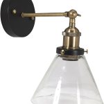 Klassisen mallinen seinävalaisin mustaa ja messingin väristä metallia ja kirkasta lasia. Sopii myös kylpyhuoneeseen.