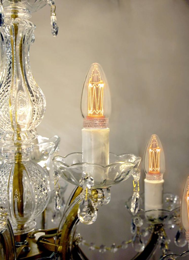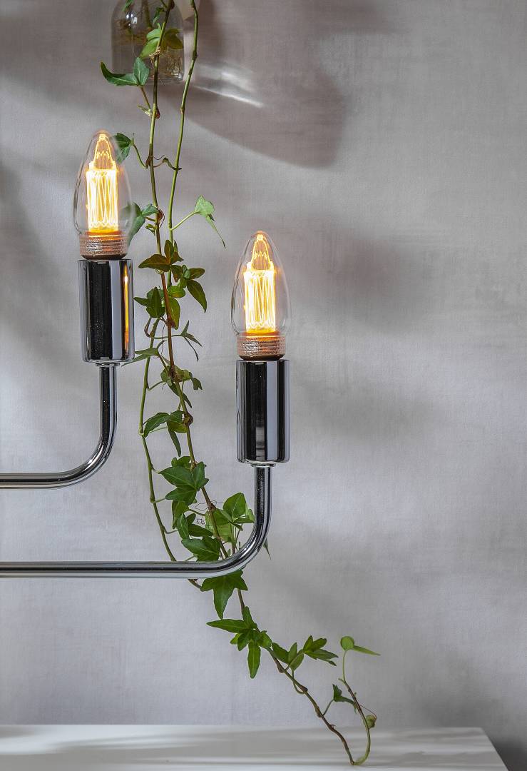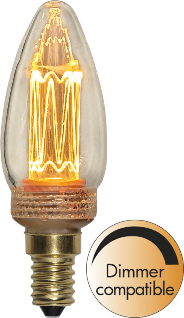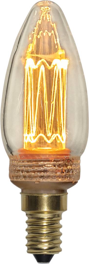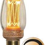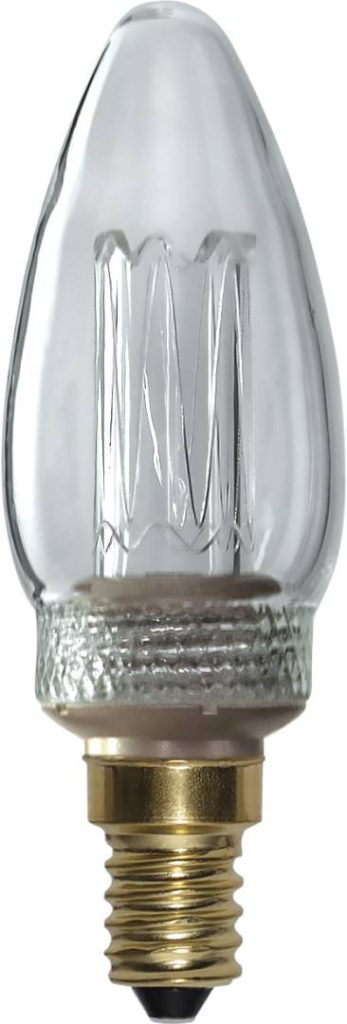 Koristeellinen LED-kynttilälamppu kirkkaalla lasilla.
