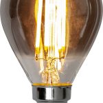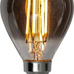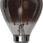 Koristeellinen LED-mainoslamppu savunharmaalla lasilla. Lampussa on tavallisella katkaisijalla toimiva kolmivaiheinen himmennys 25-75-150 lm muistitoiminnolla.
