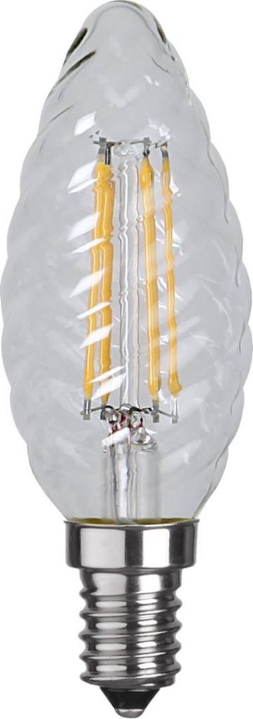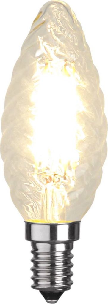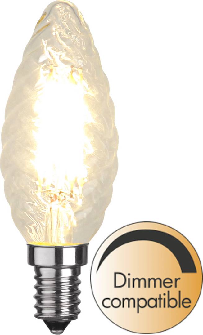 LED-kierrekynttilälamppu kirkkaalla lasilla. Lamppu on himmennettävä.