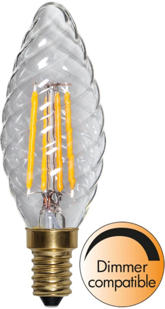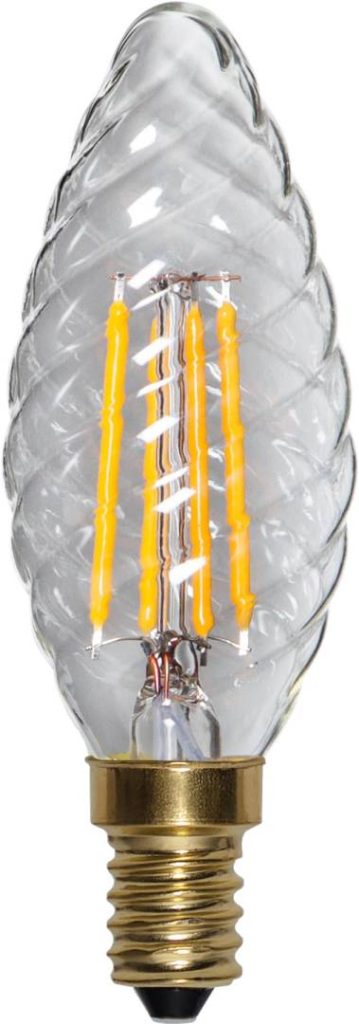 LED-kierrekynttilälamppu kirkkaalla lasilla.