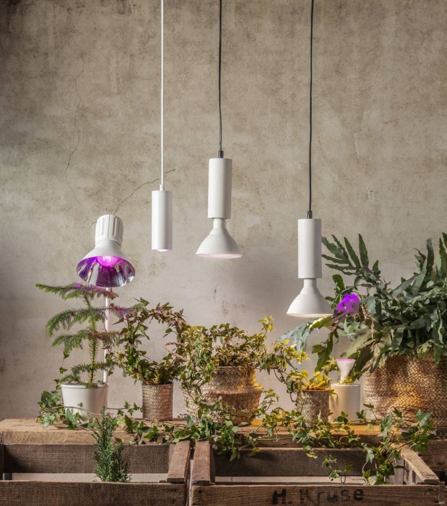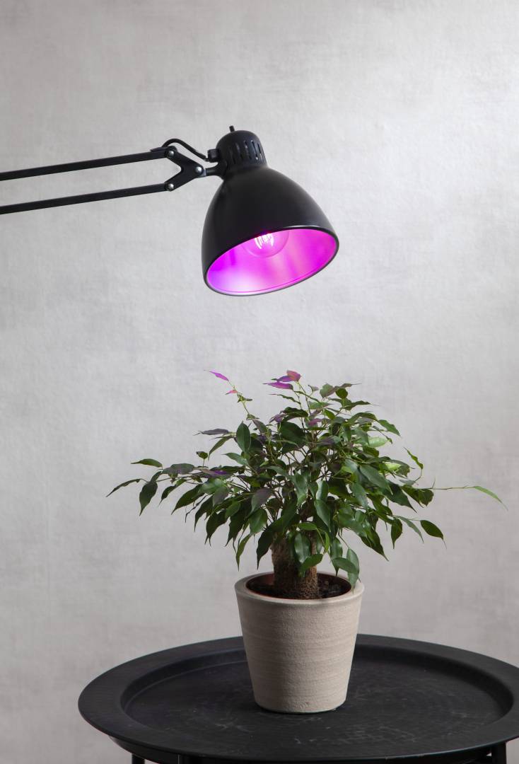 Energiatehokas LED-kasvilamppu. Kirkas lasi. Kasveille optimoitu valo.