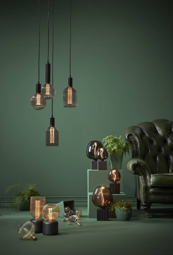 Delicious LED lamp with exciting shape and smoke glass. Gives a cozy and warm shine. Perfect for decorative lighting and fits perfectly in our cord sets, or lamp bases.