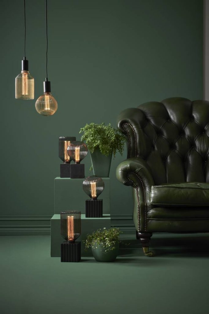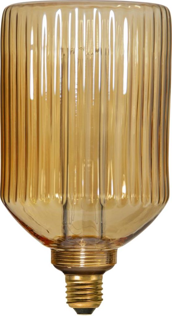 Delicious LED lamp with exciting shape and amber glass. Gives a cozy and warm shine. Perfect for decorative lighting and fits perfectly in our cord sets, or lamp bases.