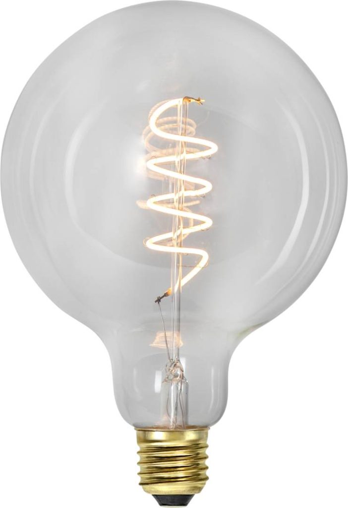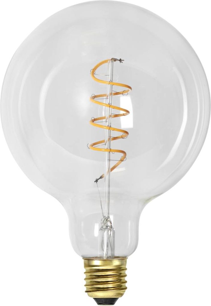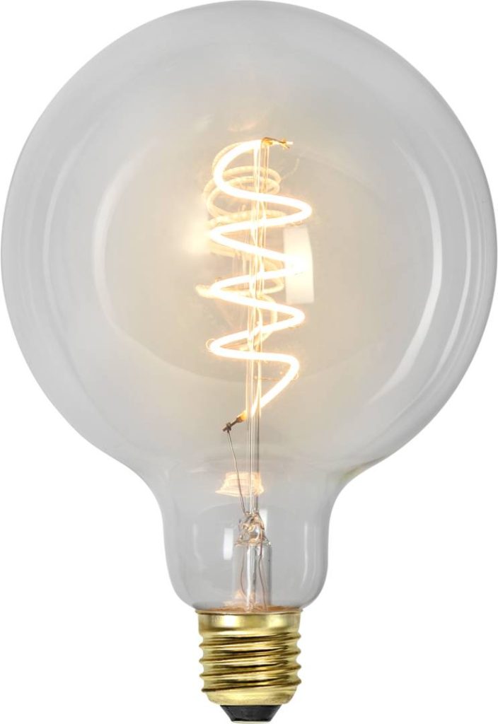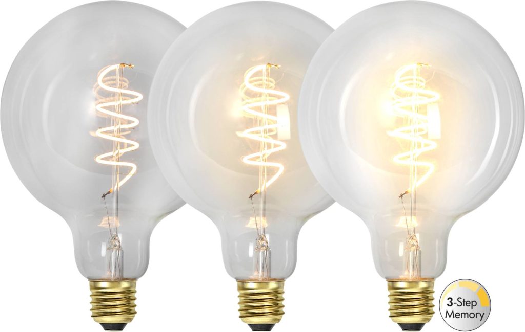 LED-lamppu kirkkaalla lasilla. Tavallisella valokatkaisijalla toimiva