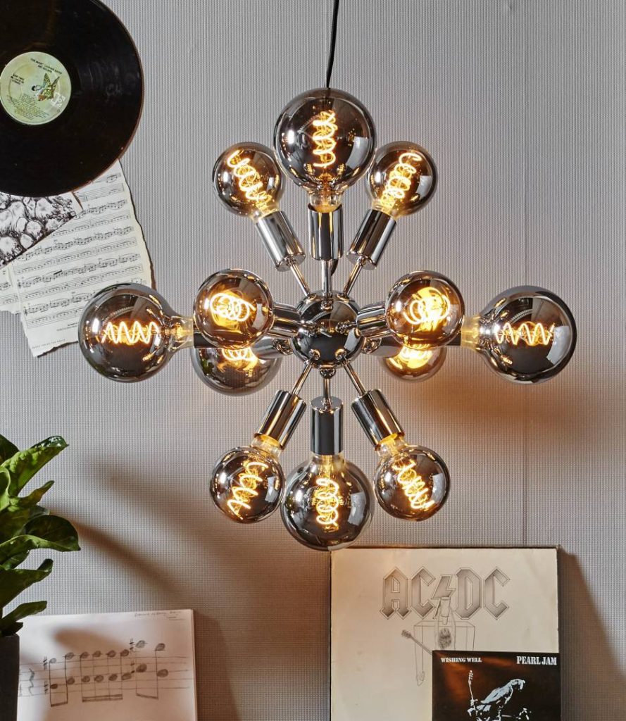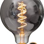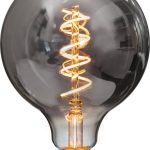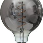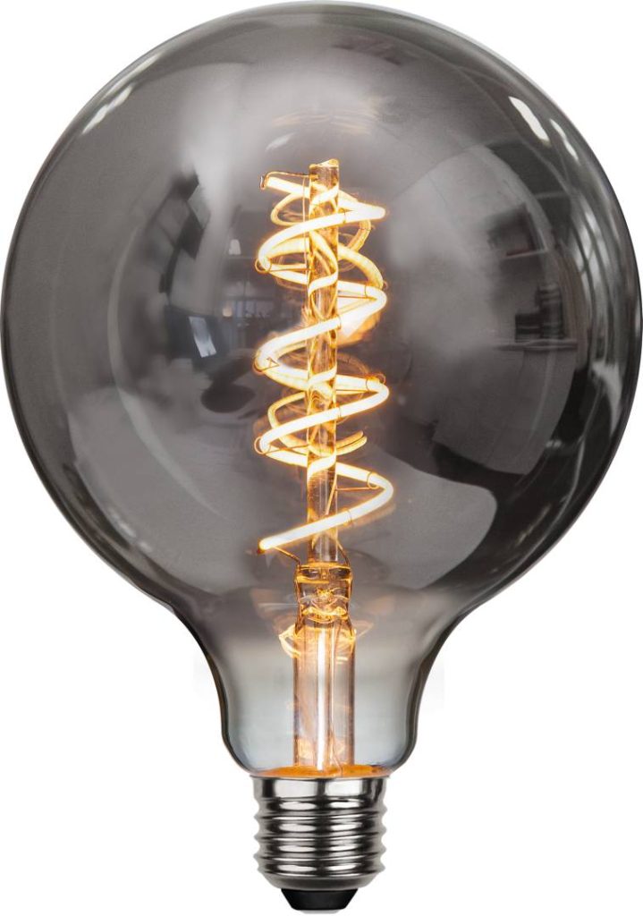 LED-lamppu spiraalifilamentilla ja savunharmaalla lasilla, joka luo pehmeän ja lämpimän valaistuksen. Himmennettävä.