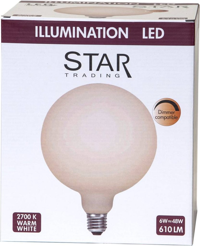 IP44. E27, 6W, 33 mA, 2600K, 610 lm.