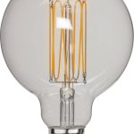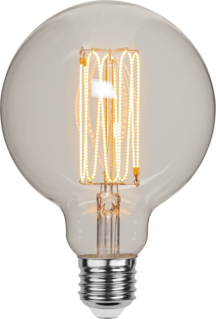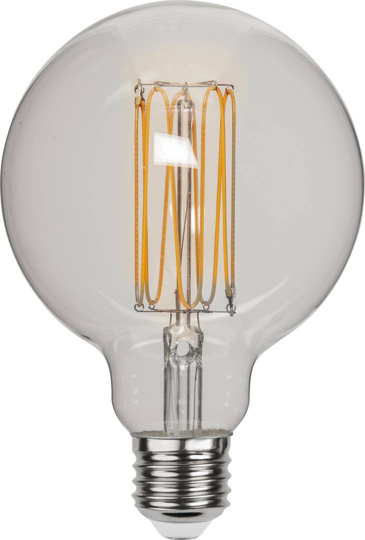 Koristeellinen LED-pallolamppu kirkkaalla lasilla ja ohuella 0,8 mm LED-filamentilla.