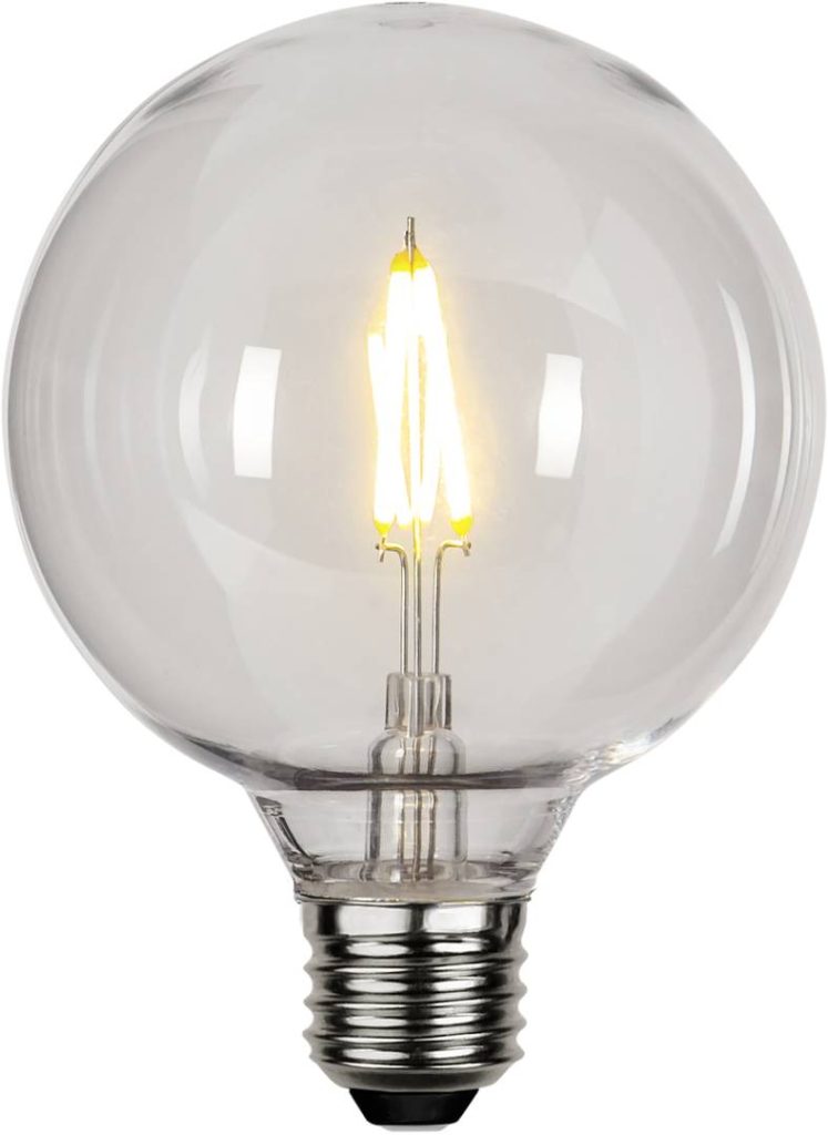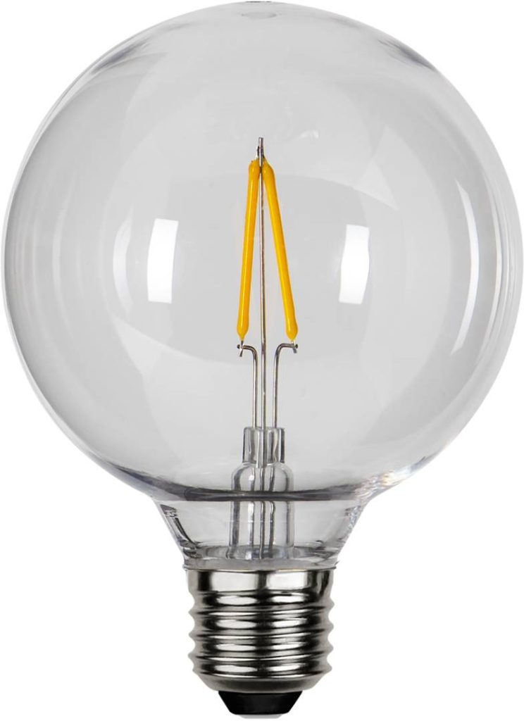 LED-lamppu kestävällä kirkkaalla muovikuvulla.