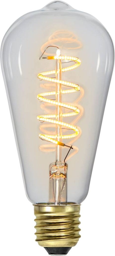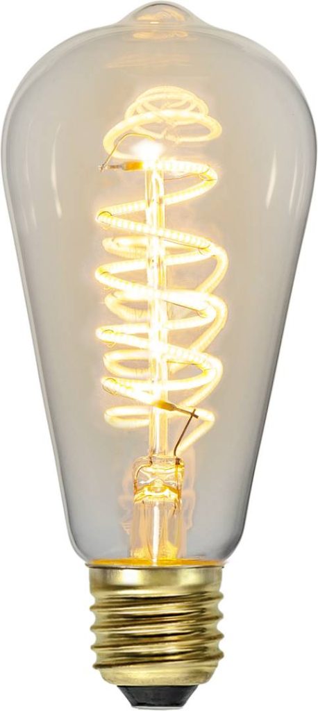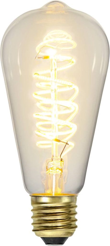 LED-lamppu kirkkaalla lasilla. Tavallisella valokatkaisijalla toimiva