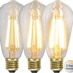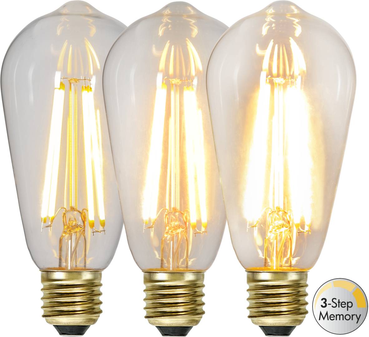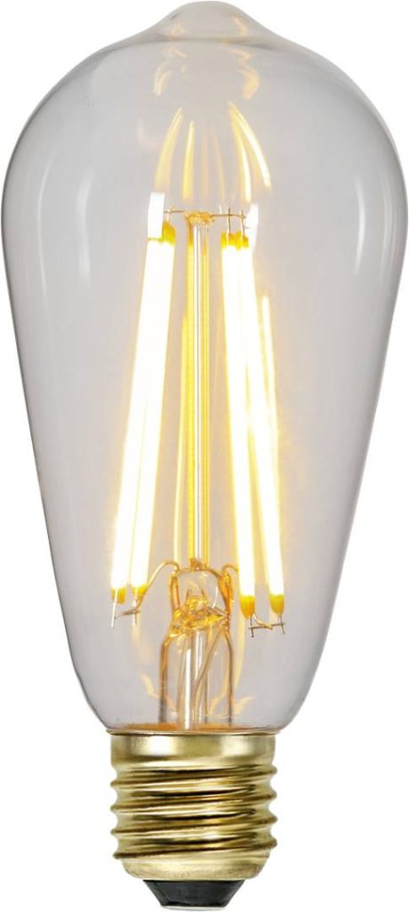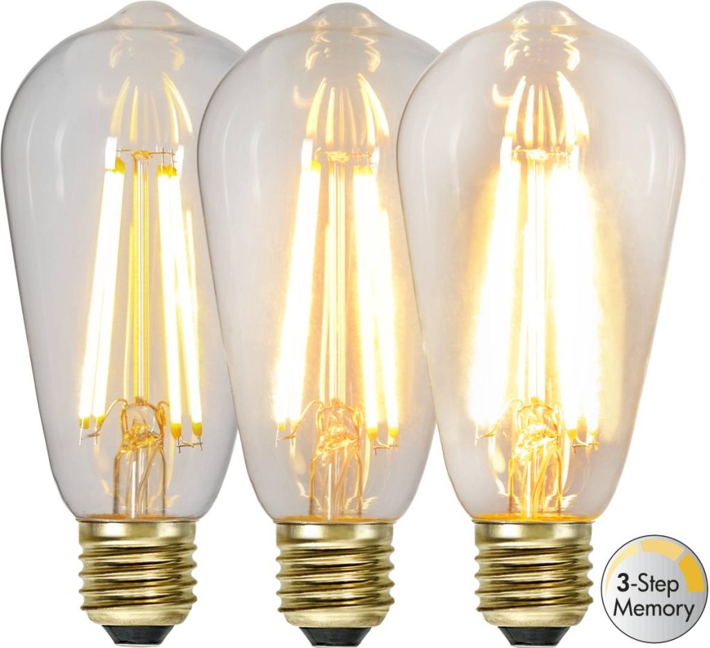 LED-lamppu kirkkaalla lasilla. Lampussa on tavallisella katkaisijalla toimiva kolmivaiheinen himmennys 70-350-700lm muistitoiminnolla.