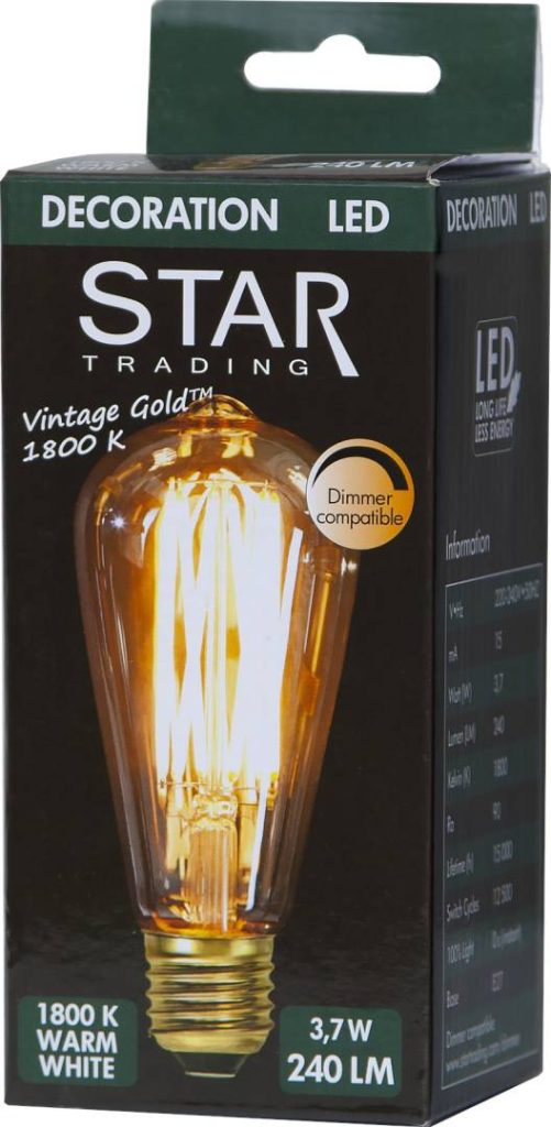 IP44. E27. 3,7W. 15 mA. 240 lm. 1800K. 90Ra.