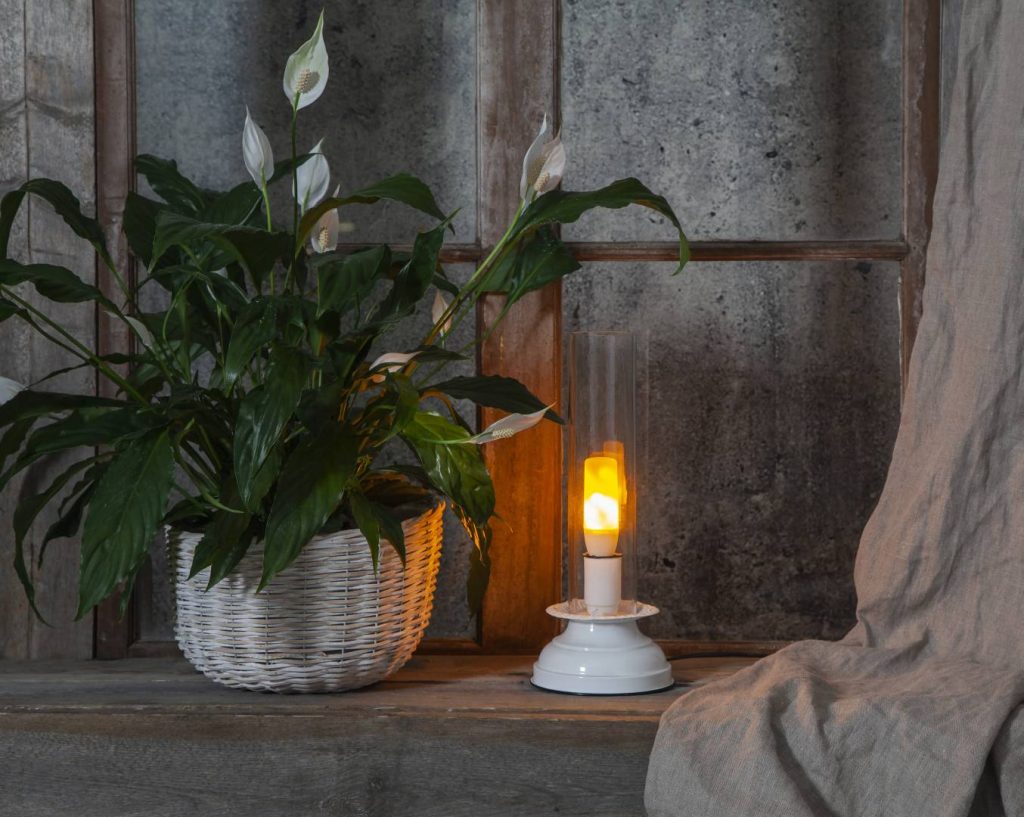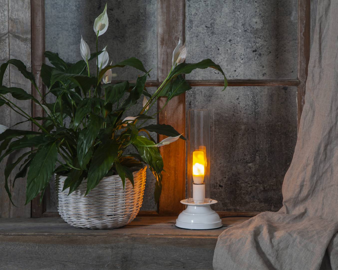 LED-lamppu, joka muistuttaa palavaa liekkiä.