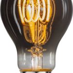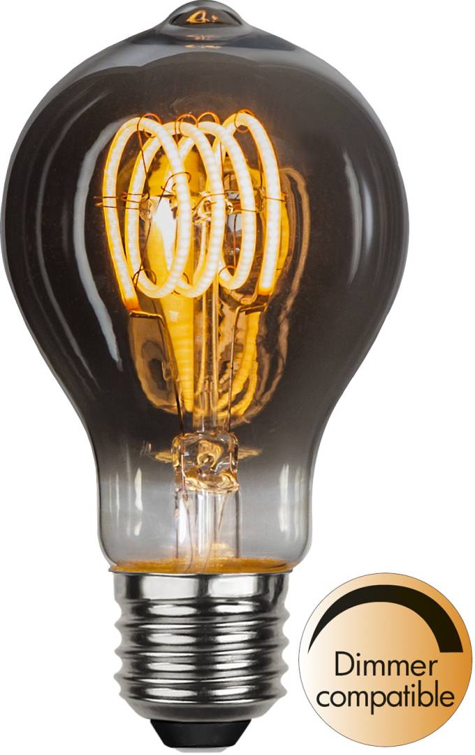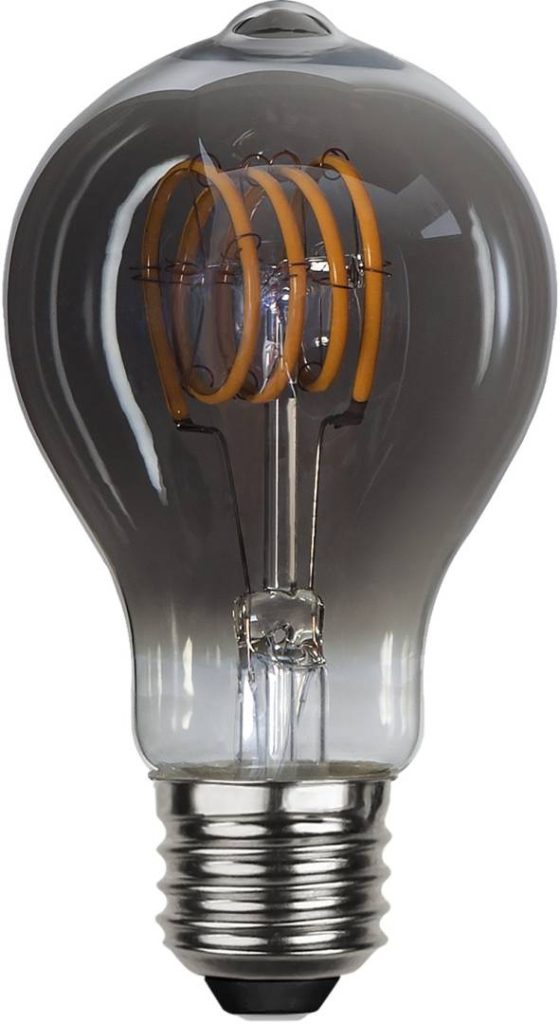 Spiraalifilamentti-LED-lamppu savunharmaalla lasilla. Himmennettävä.