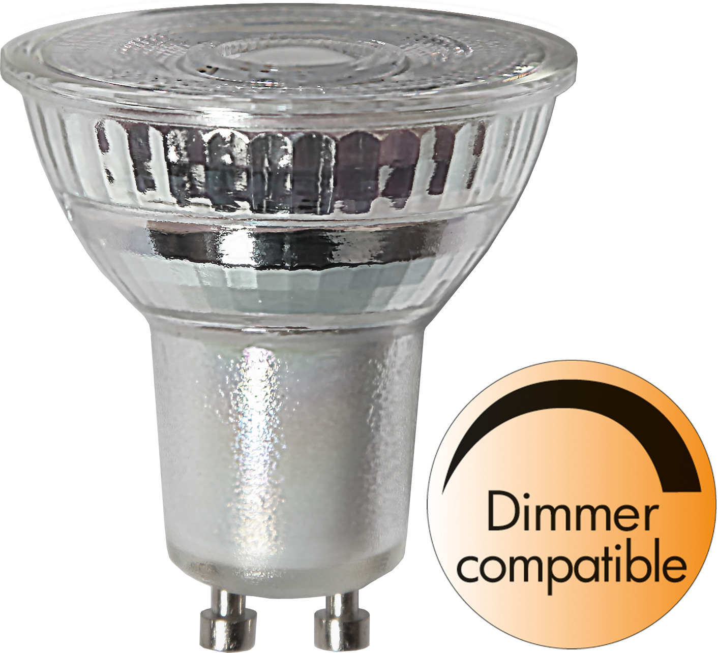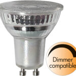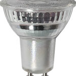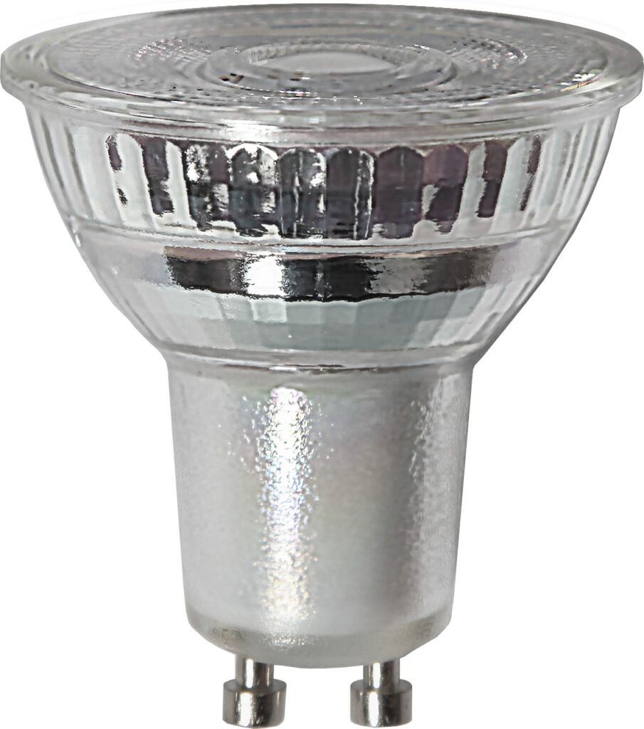 LED-spottilamppu lasia. Valokeila 36°. Lamppu on himmennettävä.