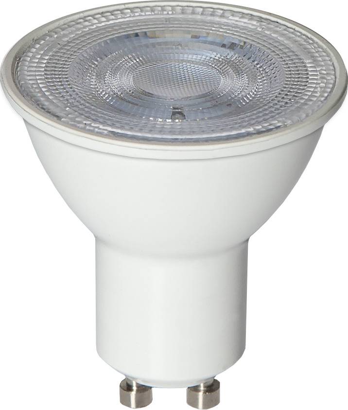 GU10, värilämpötila valkoinen 3000K. Valovirta 345 lumenta ja avautumiskulma 36°. Teho 3,6W.