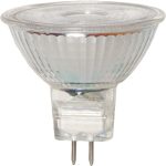 Himmennettävä GU5,3 LED-lamppu lasia. 36° valokeila. Värisävy on lämmin valkoinen 2700K.
