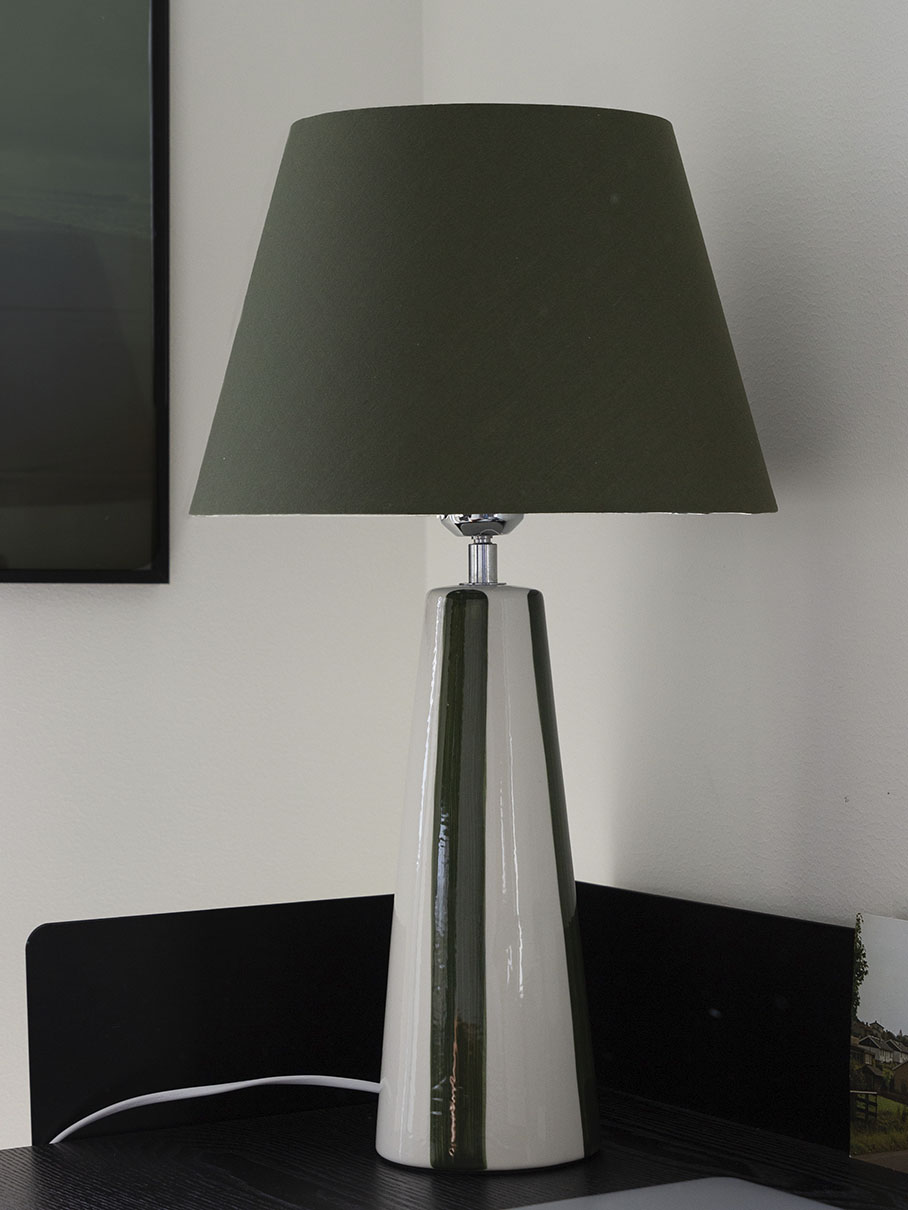 Leya pöytävalaisin koostuu raidallisesta keraamisesta lampunjalasta sekä yhteensopivasta varjostimesta.