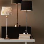 Pöytävalaisinpaketti, jossa on 46 cm korkea antiikkimessingin värinen Liam-lampunjalka ja vihreä Sofia-samettivarjostin.