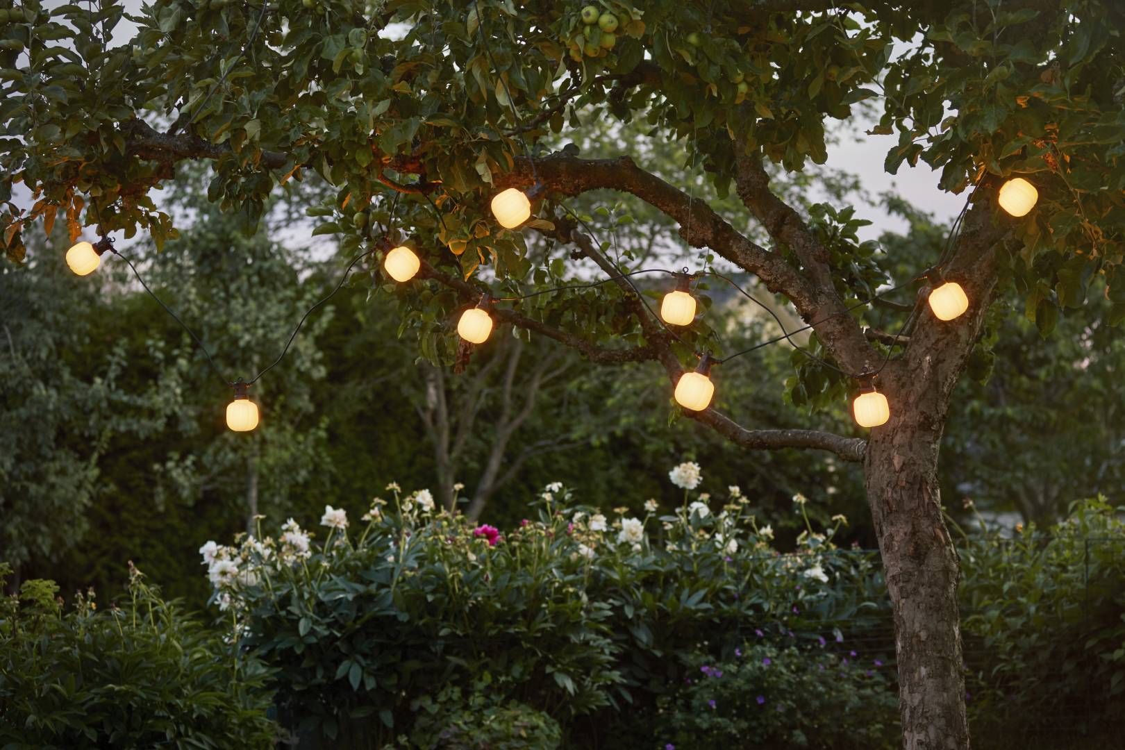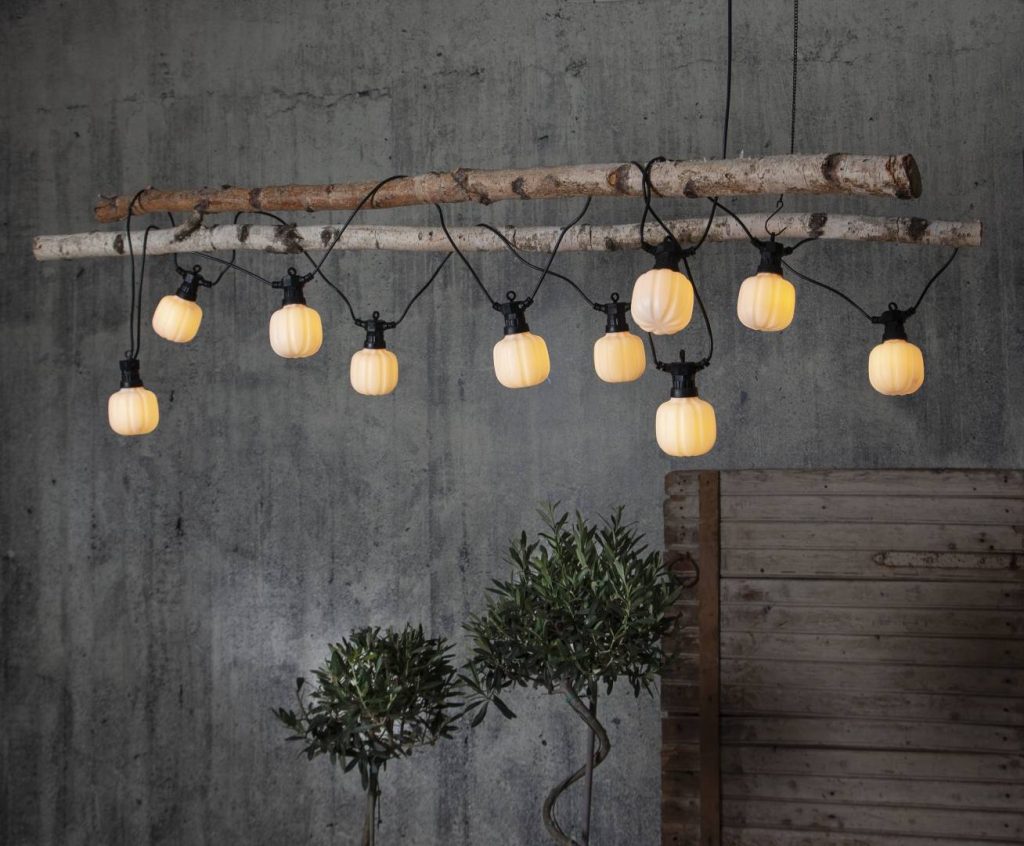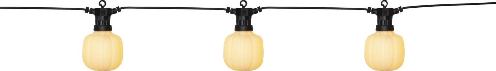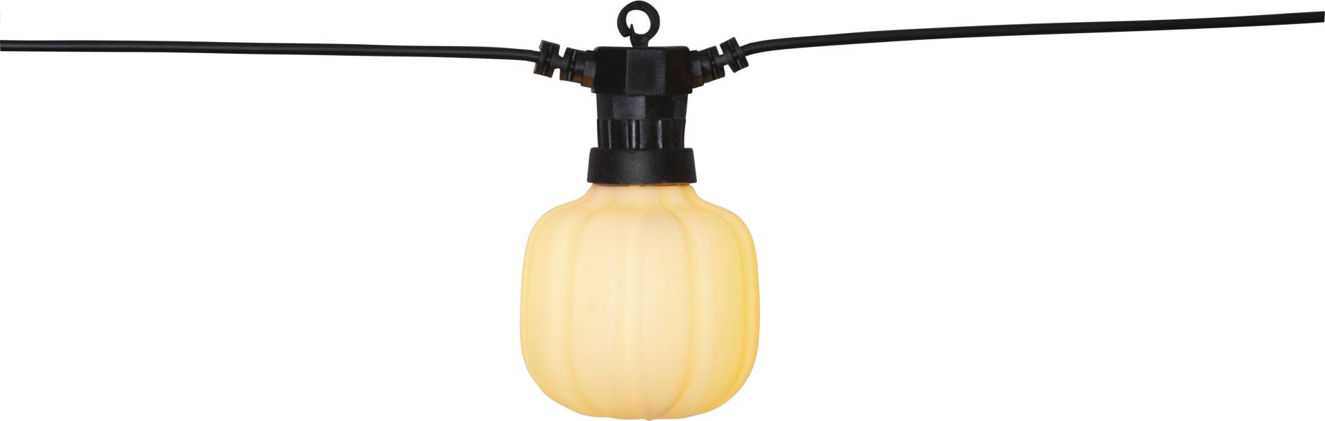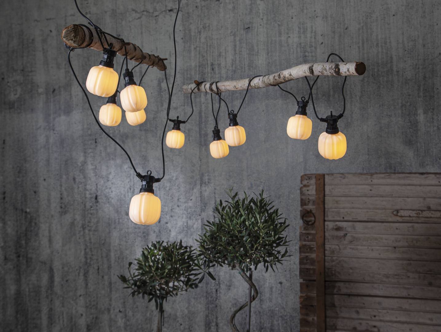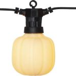Ulkokäyttöön sopiva 10-osainen LED-valosarja opaalivalkoisilla kuvuilla, joissa on sisällä lämpimän valkoiset LED-lamput. Valosarja loistaa kauniisti hämärässä, ja sopii koristukseksi sekä arkeen että juhlaan.