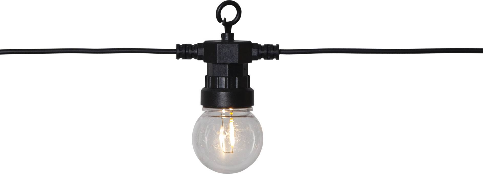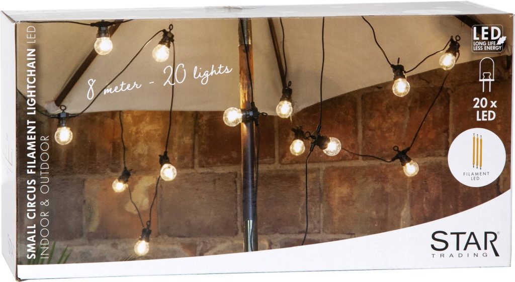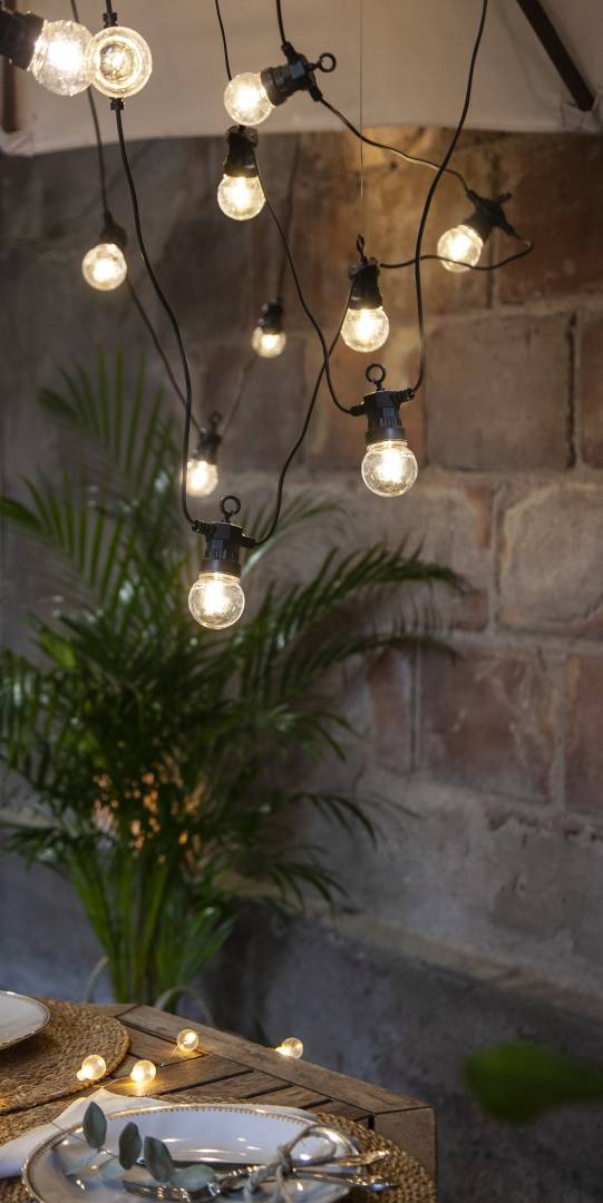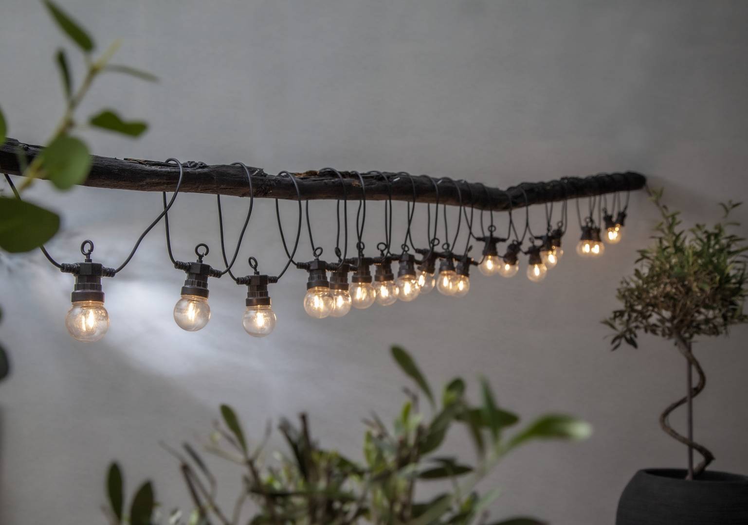 Ulkokäyttöön sopiva valosarja, joka sopii sekä arkeen että juhlaan tuomaan tunnelmallista valoa. Valosarjassa on 20 pientä kirkasta lamppua, joiden sisällä loistaa lämpimän valkoinen LED-valo. Lamppujen yläpuolella on ripustamista helpottavat koukut.
