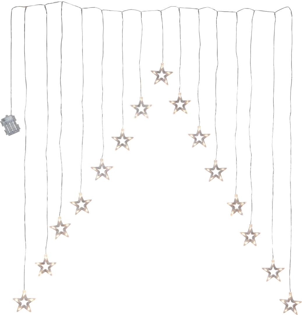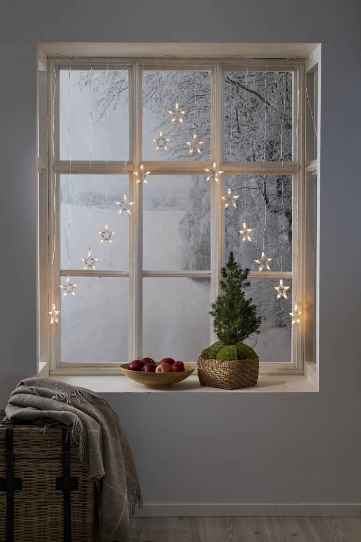 Decystar on sisäkäyttöön sopiva valoverho, jossa on 15 nauhaa ja jokaisen nauhan alaosassa LED-valaistu tähtikoriste. Tähdissä on yhteensä 75 lämpimän valkoista LED-valoa. Ripusta esimerkiksi ikkunaan tuomaan tunnelmallista valaistusta syksyn ja talven hämärään.