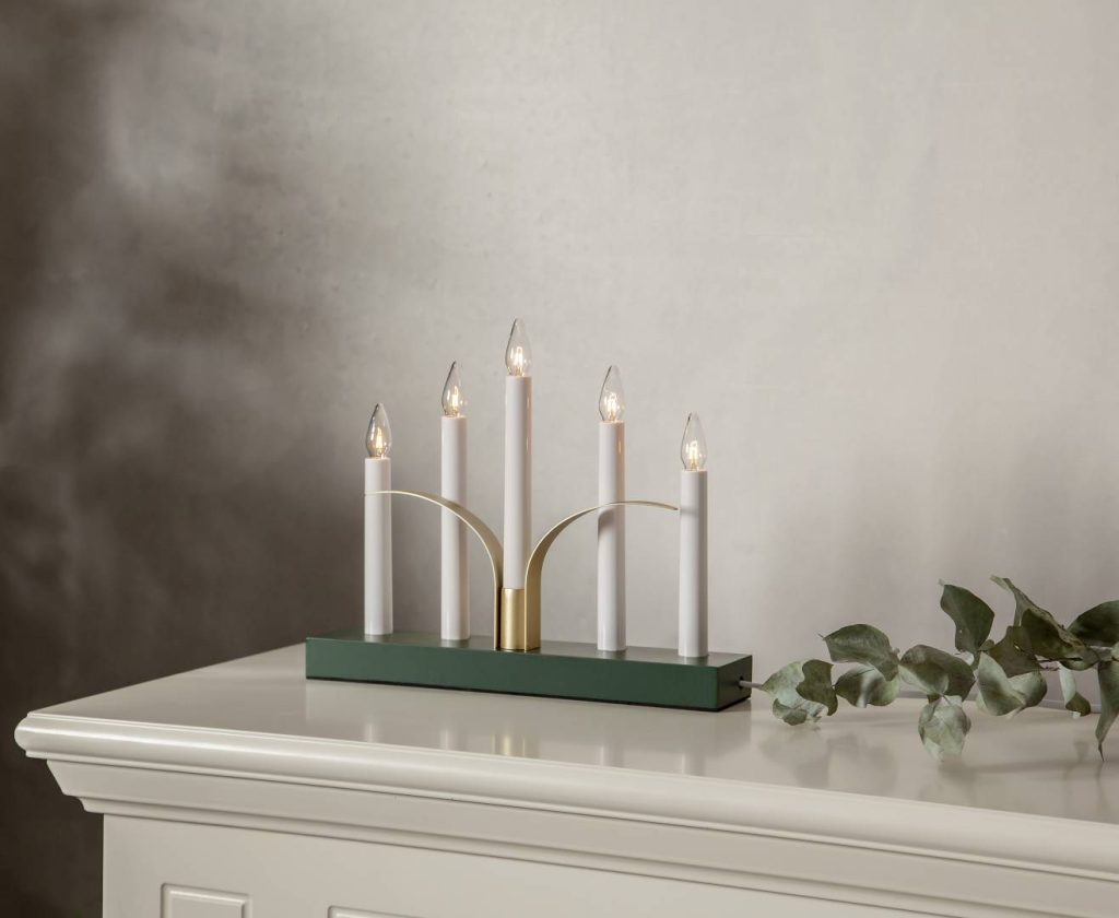 Kynttelikössä on 180 cm pitkä johto katkaisijalla ja 5 vaihdettavaa E10-lamppua.