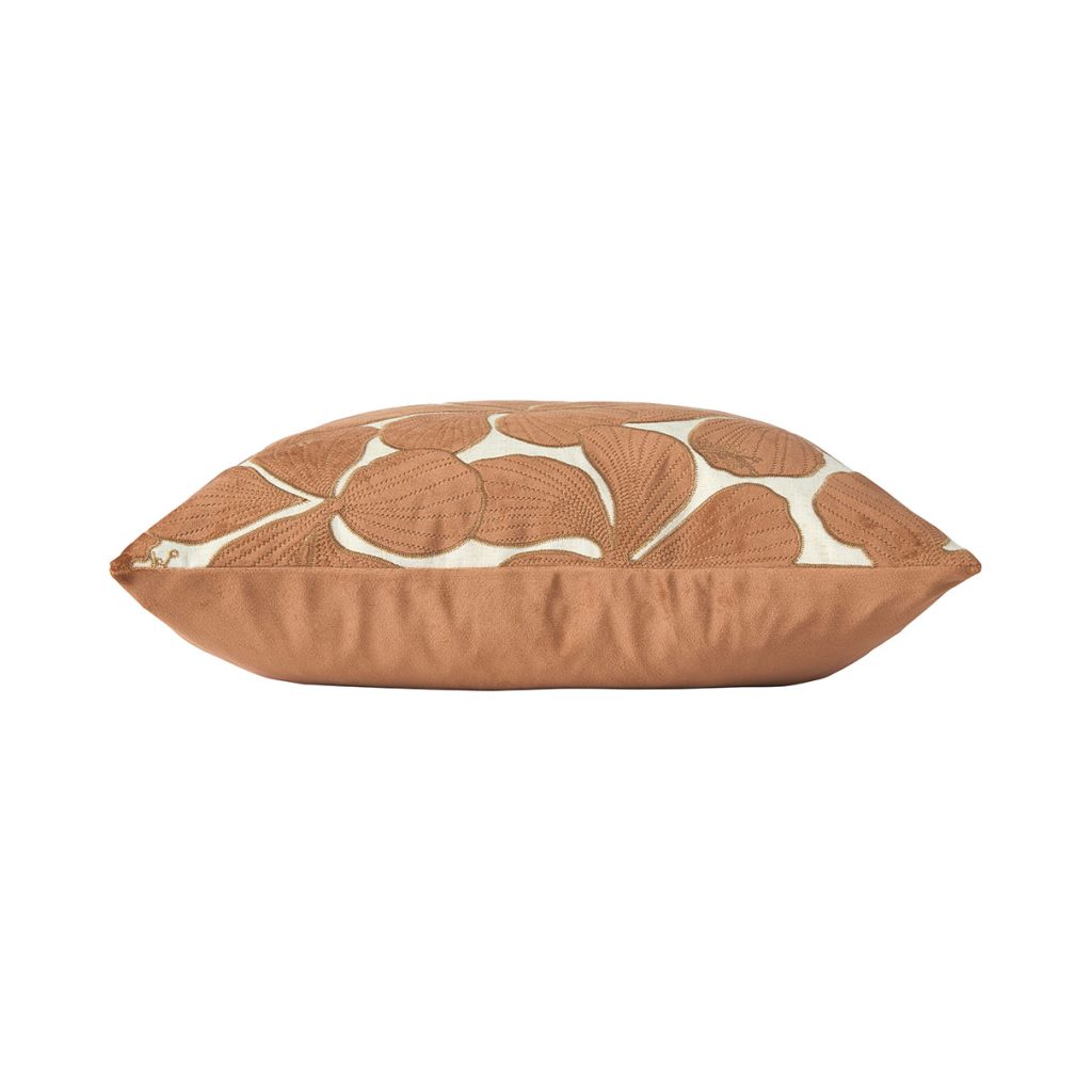 Tyynynpäällinen, jossa etupuolella samettiset applikoidut kuviot, taustapuoli kuvioiden kanssa saman sävyistä samettia. Vetoketju alareunassa.