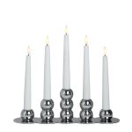 Kiiltävät krominväriset metallikynttilänjalat ovat kauniita ja sopivat moneen sisustukseen ja kattaukseen.